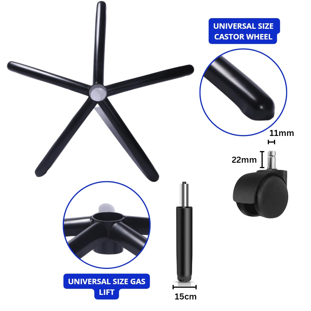 🔧 Replacement Parts for All Chairs: Whether you need a new base, leg, or wheel, this replacement kit has you covered. It’s the ideal spare parts solution for office chairs, revolving chairs, and even wheelchairs.