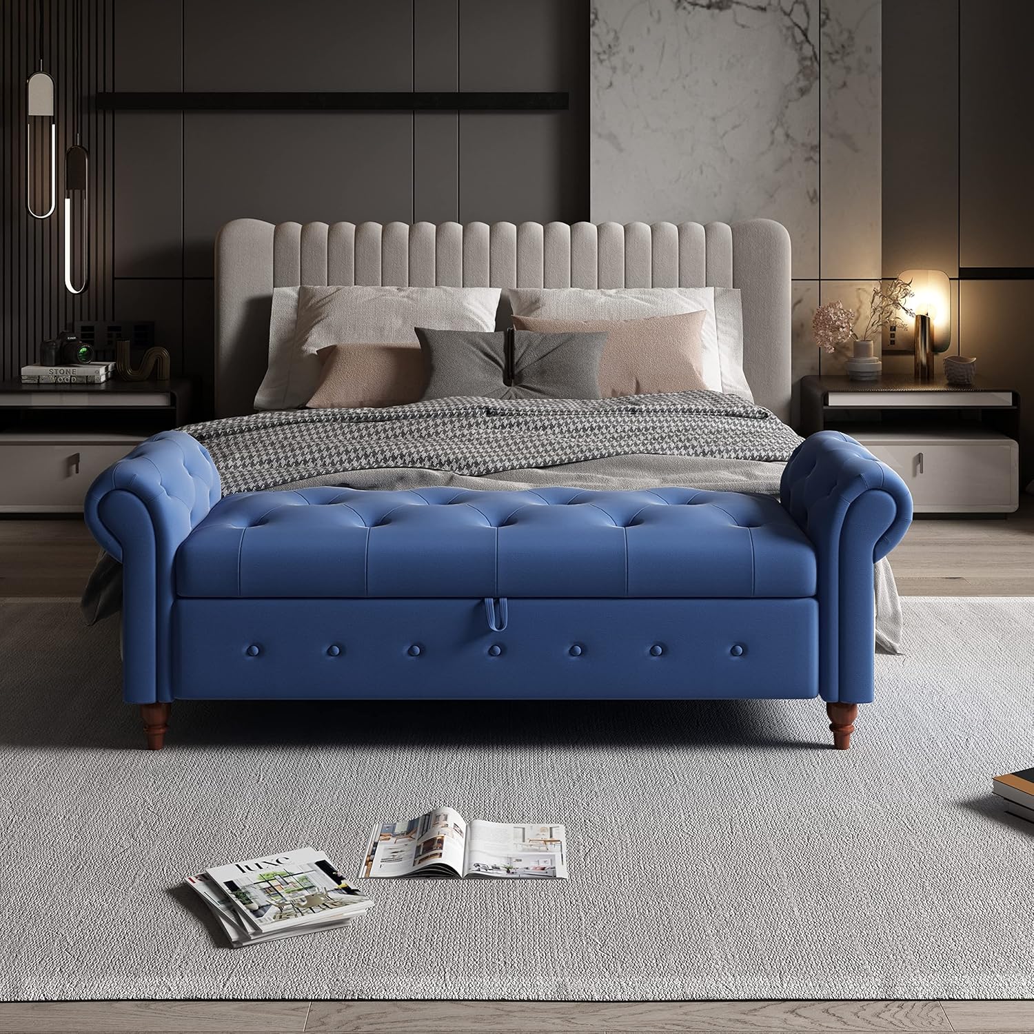 Be the first to review “63″ Tufted Storage Bench for Bedroom End of Bed,Upholstered Storage Ottoman Bench for Bedroom,Rolled Arm Window Bench Seatwith with Solid Wood Legs(Blue)”