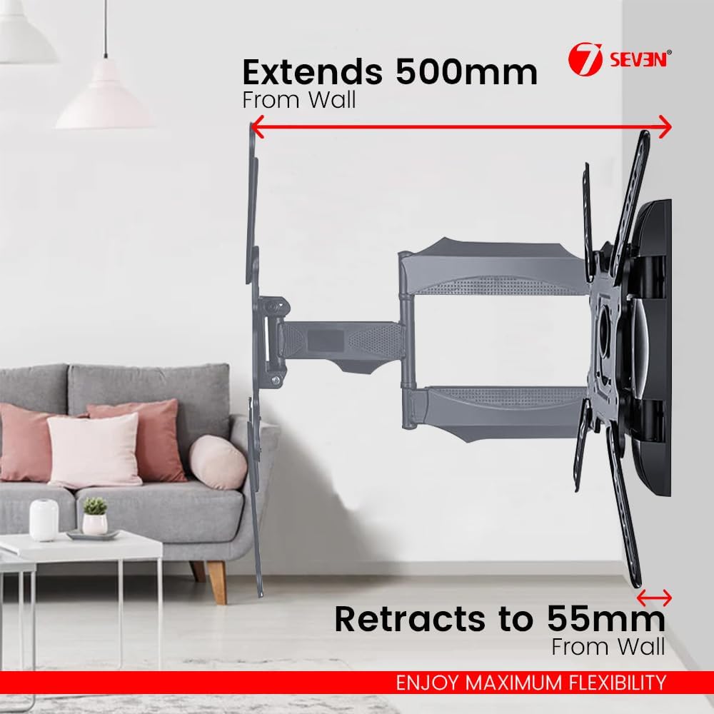Full Motion Articulating Arm: Our stand features a full motion articulating arm, allowing you to extend, tilt, and swivel your TV for the optimal viewing angle from anywhere in the room.