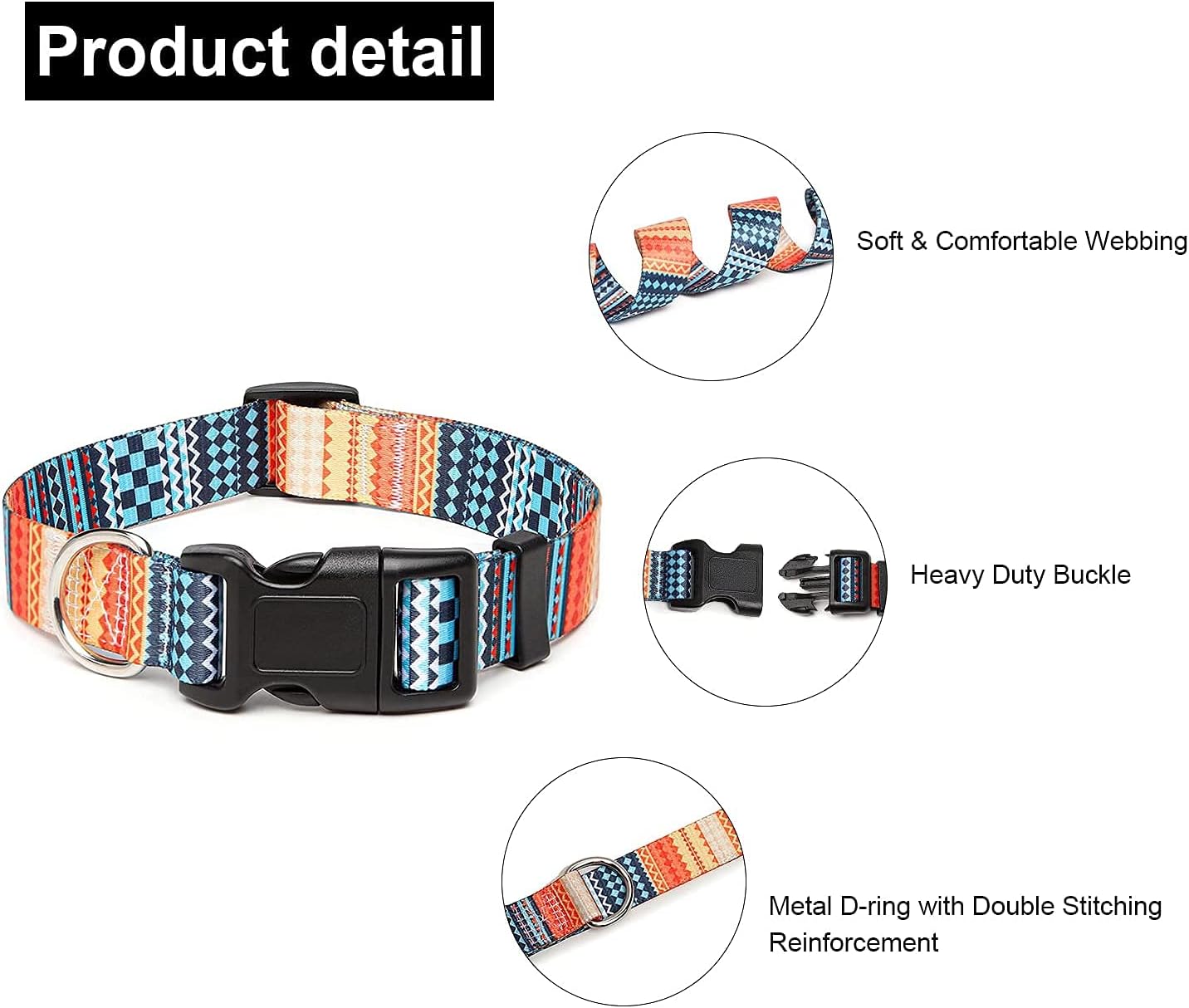 Adjustable Nylon Dog Collar with Patterns, Soft Comfy Pet Collar for Small Medium Large Dogs (M) (M)