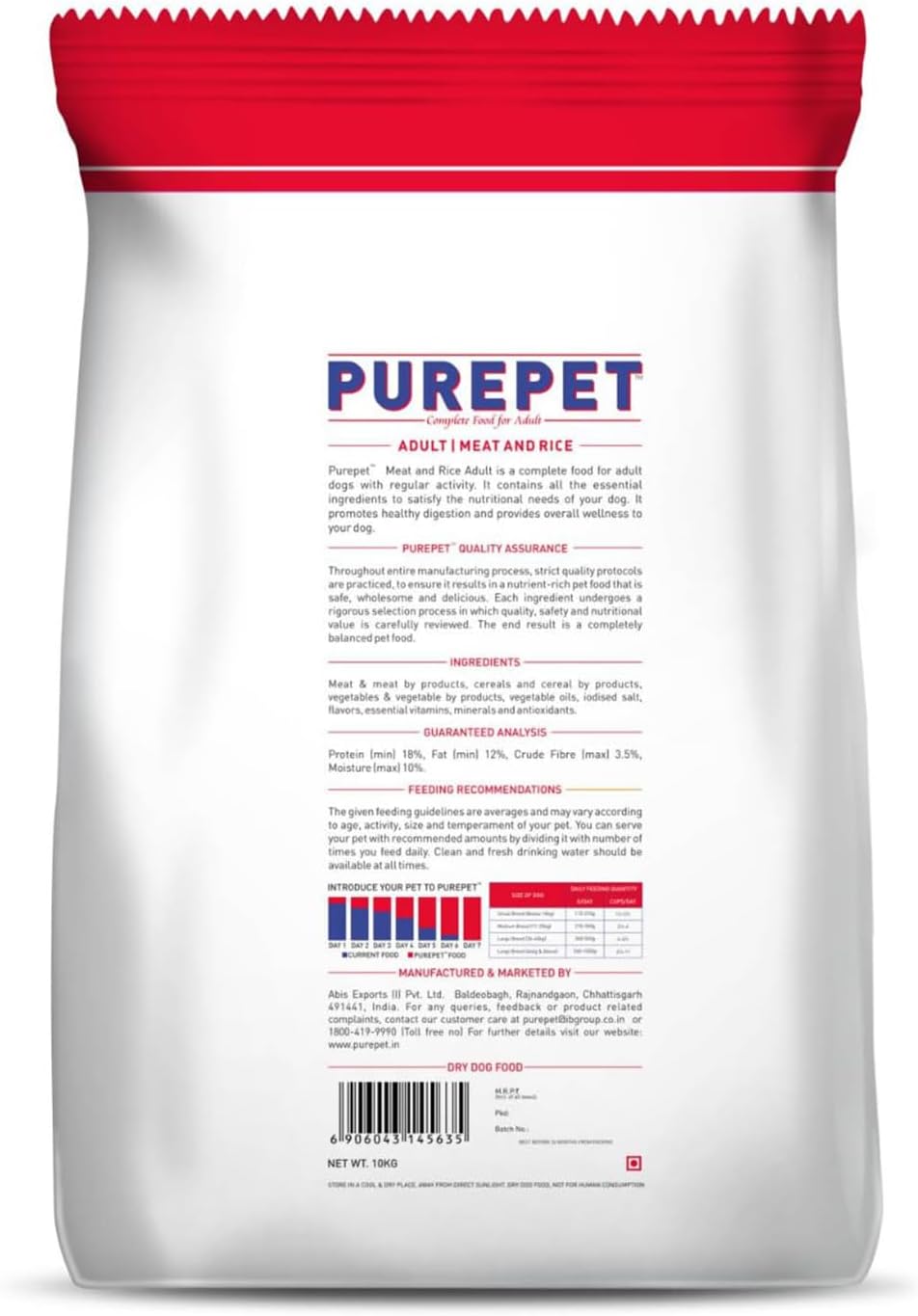 Referring the chart above, you can introduce Purepet Adult Dog Food by 10% on the 1st day proportionately with the current food. Gradually you need to increase the portion so that in a week’s time, your pet has switched 100% to Purepet Adult Dog Food.