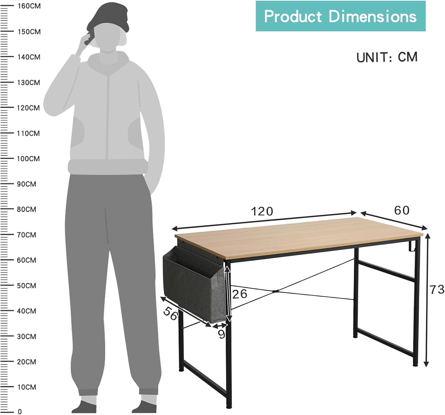 Product Details : 1 x Computer Desk Table , Color: Walnut, Size :120x60x74 cm, Material : Engineering Wood Top + Metal Powder Coated Frame Stand