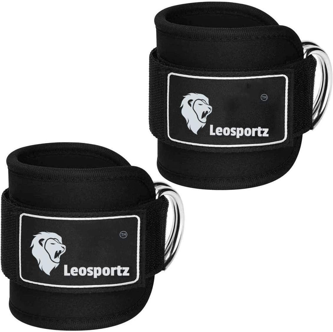 The Leosportz®ï¸ kickback Ankle Straps for gym come from a team of bodybuilding and CrossFit athletes who have considered all the requisite and complicationsof building sexy toned legs and a good-looking firm booty for all while designing these ankle straps for women and men. A muscle building equipment provides support for your mind and body to push with added force and passion that leads to muscle hypertrophy during weightlifting.FEATURES: 10 extra-long with 4 width, can also be used as ankle weights.4MM thick neoprene padding makes the ideal muscle training equipment for weight lifting/exercise bands.Rounded edges are comfortable to grasp and are skin-friendly, can be stored in your gym bag.Top-quality ankle strap with lifetime durability and comfortability with workout machine kickback straps.Heavy-duty stitching increases the life and looks for adductor exercise.Embraces the weight to reduce stress on the tendons during heavy workouts.Top-level 2 D-Rings for glute machines that would hold together for years to come.ONE SIZE FITS ALL ankle cable attachments for the gym.Uniquely, these ankle straps for cable machine cuffs can withstand weight up to 200 lbs, but please lift weight according to your needs with butt workout equipment. Ideally, padded ankle wraps for men women.MAXIMUM QUALITY at a MINIMUM PRICE: This a bargain, we bet that you will not find a pair of ankle straps at this price in the workout gear/gym accessories market.Package Includes:2 x Ankle Straps
