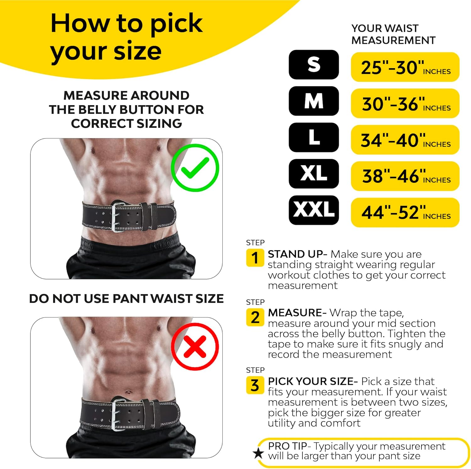 ADJUSTABLE SIZE CONFORMS TO YOUR NEEDS: Destined to please even the most demanding weight lifting needs, our padded gym belts are fully adjustable to ensure a comfy yet snug fit. Each lifting belt has a double prong roller metal buckle and 2 loops to secure the belt tab. No more belts coming loose. No more belts not fitting well.