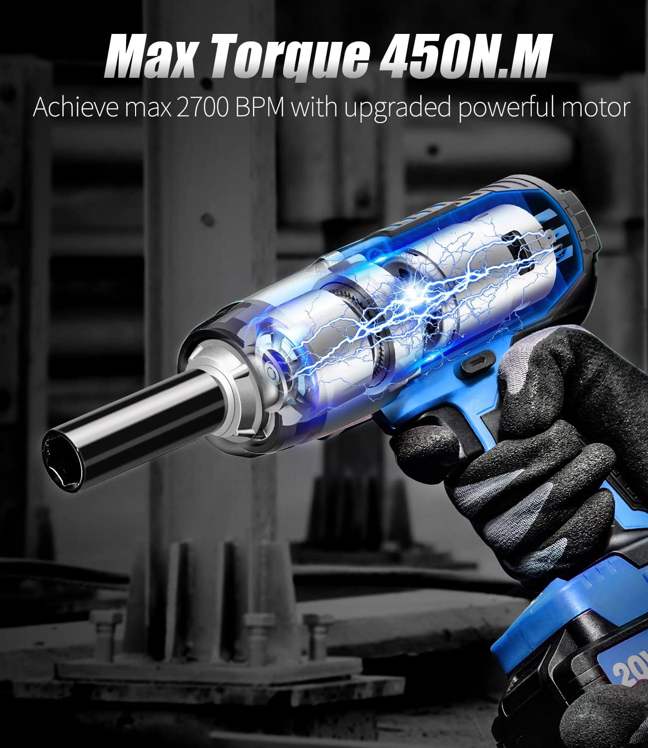 POWERFUL MOTOR: By removing rusted-on or excessively tightened nuts and bolts, this 1/2 impact wrench, which has a high-end, strong motor, offers maximum productivity; Maximum torque for tightening is 330 ft-lb, and loosening is 370 ft-lb