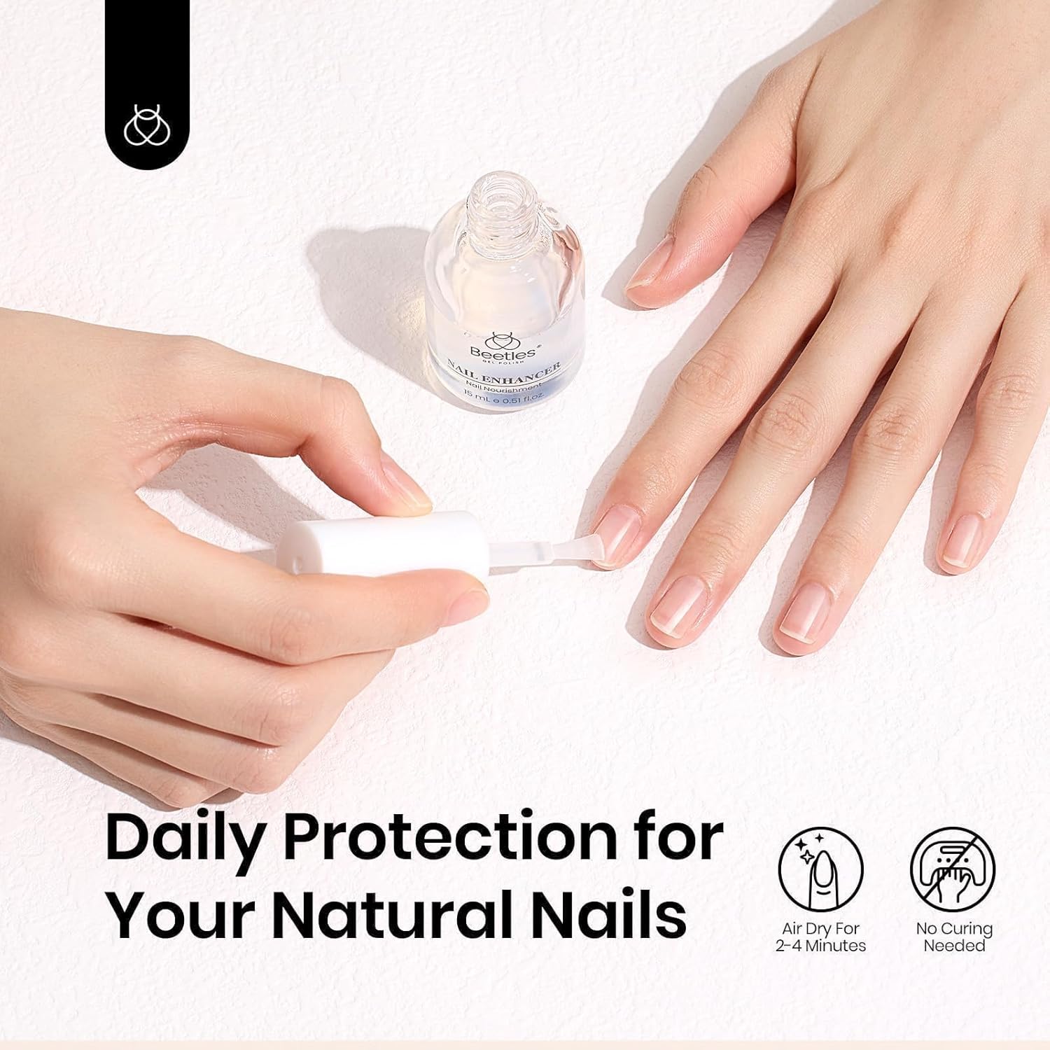 【Upgraded Water-based Nail Strengthen】Enhance Your Nails in 1 Week. Beetles Nail Strengthener Added vitamin B7 and natural plant extracts and nutrients. Increases circulation to the nail bed, stimulates new growth, strengthens soft nails, and accelerates nail repair and strengthening. Tips: It is recommended that you do not touch water within two hours of using it, and then wear gloves before touching hot water.