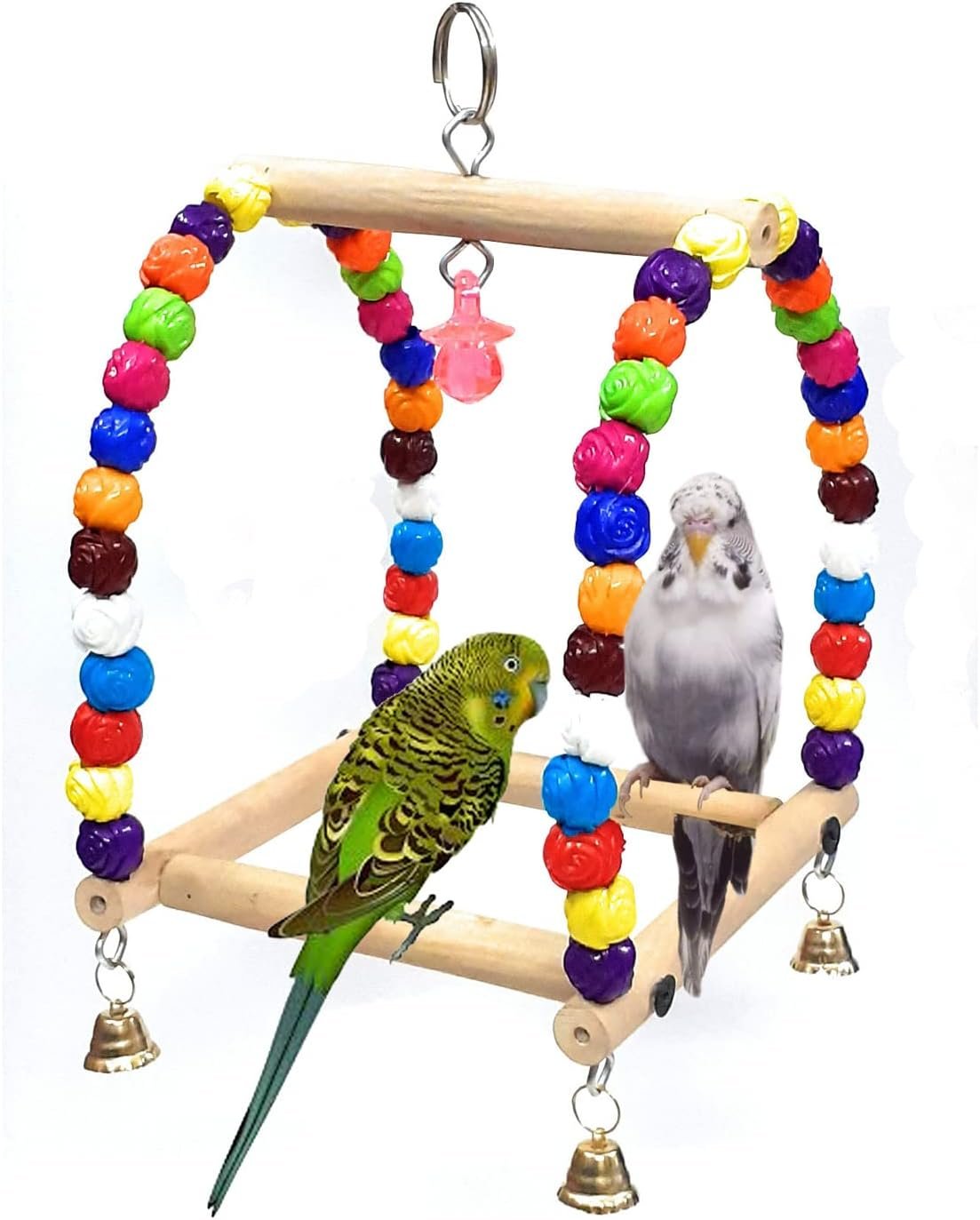 Easy to install : All parakeet cage accessories toy come with an active hook that simply attaches to the top of the pet cage for easy installation.