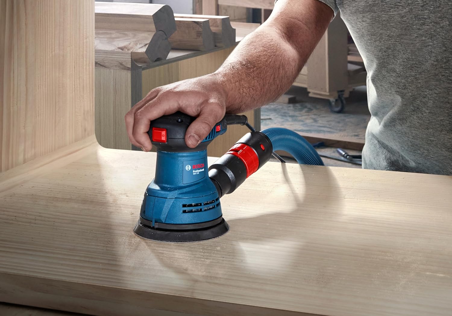 The Bosch Professional GEX 125 is the ideal random orbital sander for highly efficient sanding with more comfort. This compact corded sander has a well-balanced design, making it easy to control and guide along wooden and other material surfaces. Low tool vibrations of 3.8 m/s2 enable finishing more sanding as hand fatigue and numbness are kept to a minimum. For even greater sanding efficiency, the speedy and powerful 290-watt motor removes material at a high rate.