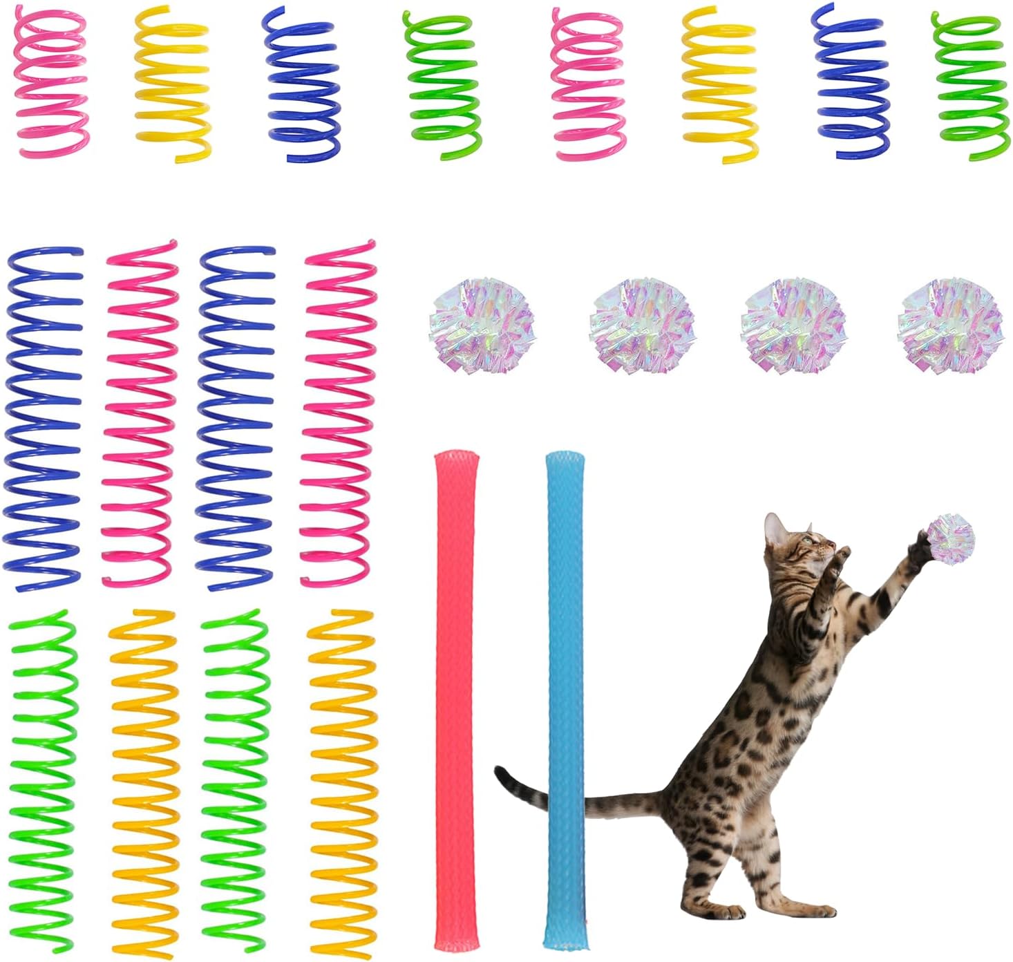 Variety of Toys:This cat supplies contains a total of 22 Pc toys, featuring 16 cat spring toys, 2 mesh tube spring toys, and 4 cat crinkle balls,variety of toys to give kittens more choices and variety of fun.