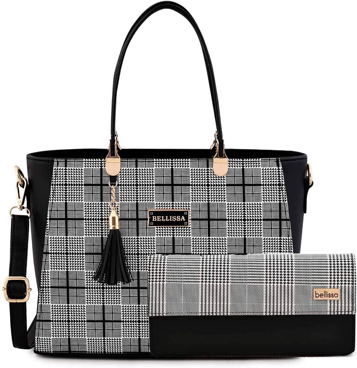 In this checkered handbag material used is PU leather and internal lining is Jacquard.This bag has 2 main spacious compartment, 1 internal coin zipper pocket & 2 mobile pocket and 1 external zipper pocket, 2 grab handles to carry with ease along with detachable & adjustable cross body strap with handle fittings at front and back & tassel at the front.