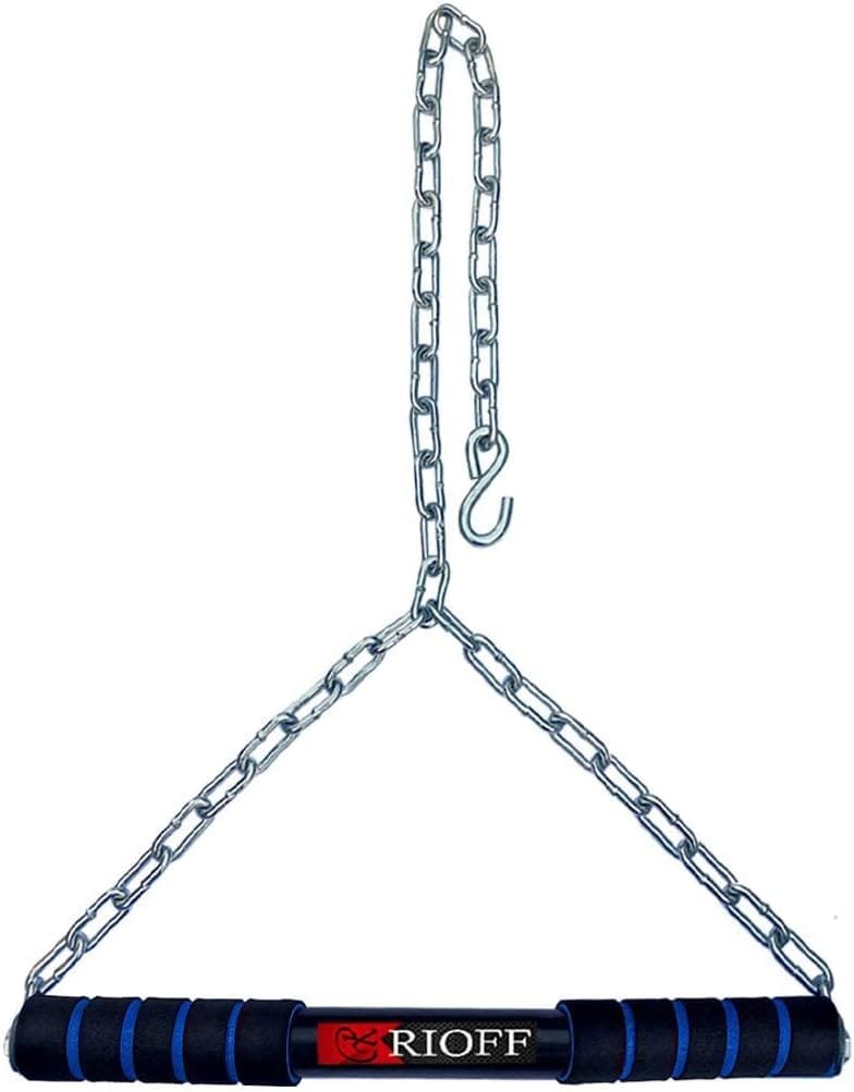 Rioff Hanging Rod Pull Up Bar 5Feet Long Heavy Chain. Made of heavy steel chain and heavy rod fixed with it and foam cushions for extra cushion and comfort for hanging. Specially designed for Gym lovers and regular use as it helps to increase your height. Capacity : (90-100) kg.