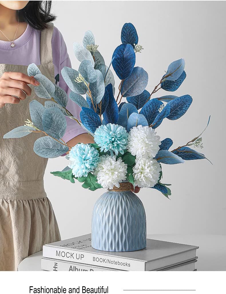 Artificial flower and vase: Bottle diameter: 4.5 inches, overall height: 16 inches. Flowers and leaves are made of silk and plastic. The flowerpot is made of ceramics, which is exquisite and beautiful.