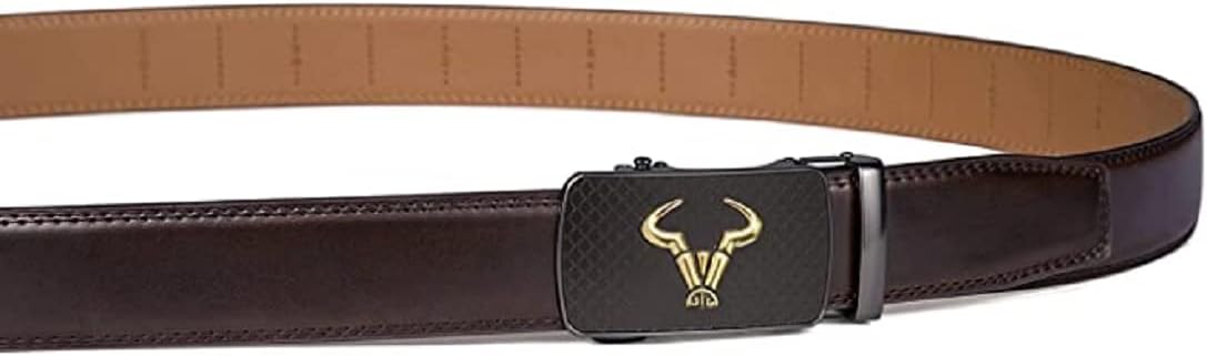 Contacts Men’s Genuine Leather Auto Lock Buckle Belt | Leather Belt for Men (Free Size), Brown