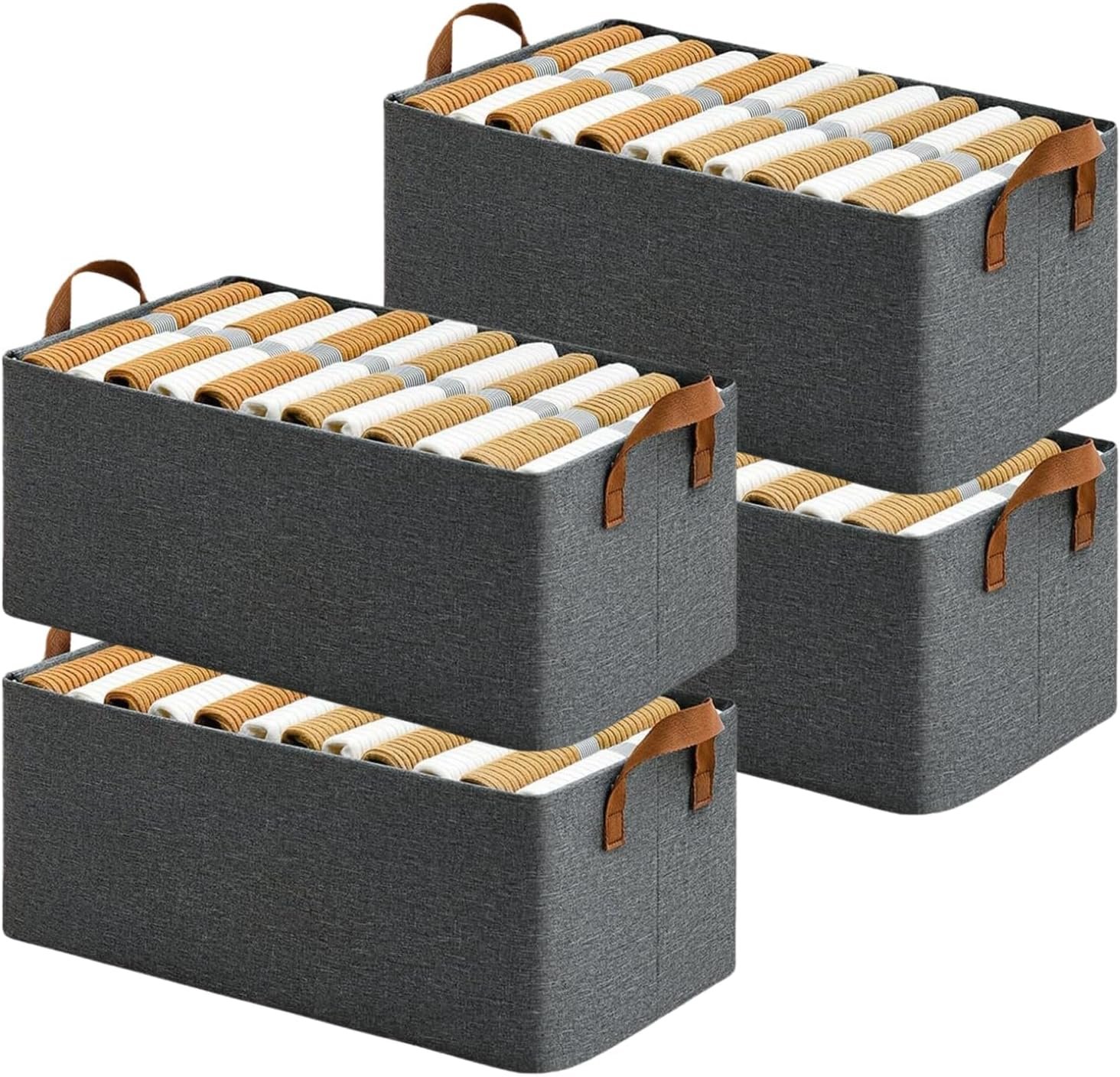 DAREV Wardrobe Organizer for Clothes with Metal Frame Rectangle Storage Baskets for Clothing Fabric Storage Box with Handles Shelf Basket for Storage Clothes Pants Jeans Sweater (Grey, Pack of 4)
