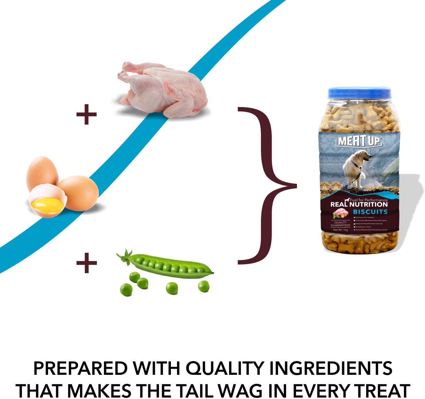 Crunchy texture helps to remove plaque and tarter build-up. Our oven baked biscuits are prepared with real chicken. With no added colors and flavors it deliver a complete and balanced nutritious treat for your pet. Meat Up biscuits can be given as a reward to your canine in any occasion to show your love for them. You can feed them as a snack or treat in their daily health diet as well. The quality ingredients with no added colors or flavors in Meat Up biscuit gives the happiness in each treat. A healthy reward which can be given in any occasion to witness their wagging tail all the time. All the essential ingredients are formulated to prepare Meat Up biscuit providing the nutritional values to your pet. Please make sure while receiving the product, it is not tampered or damaged. Store in a cool and dry place, away from sunlight. Not for human consumption.