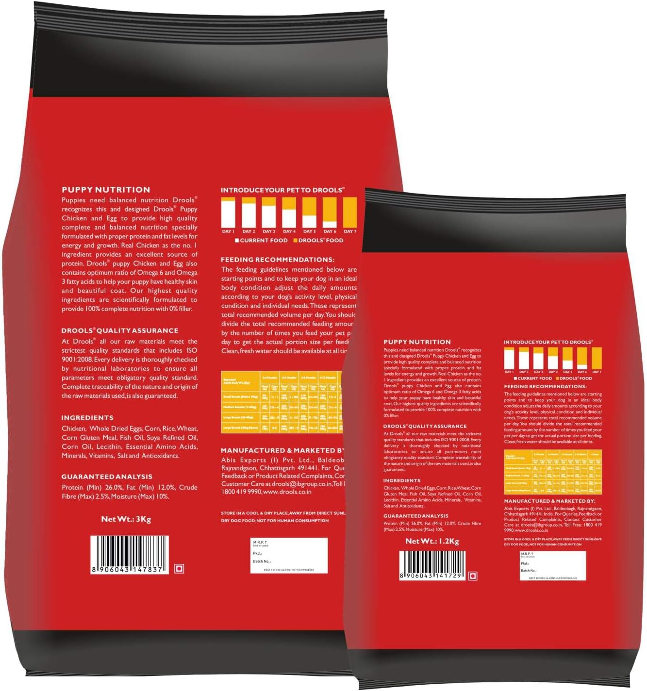 Drools chicken and egg puppy dog food is a complete and balanced diet formulated for all breeds. It is highly palatable and loaded with goodness that any breed of canine will love.