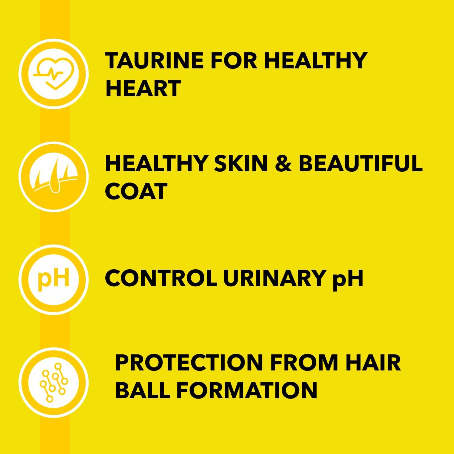 Taurine for healthy heart Healthy skin and beautiful coat Hairball protection Control urinary pH