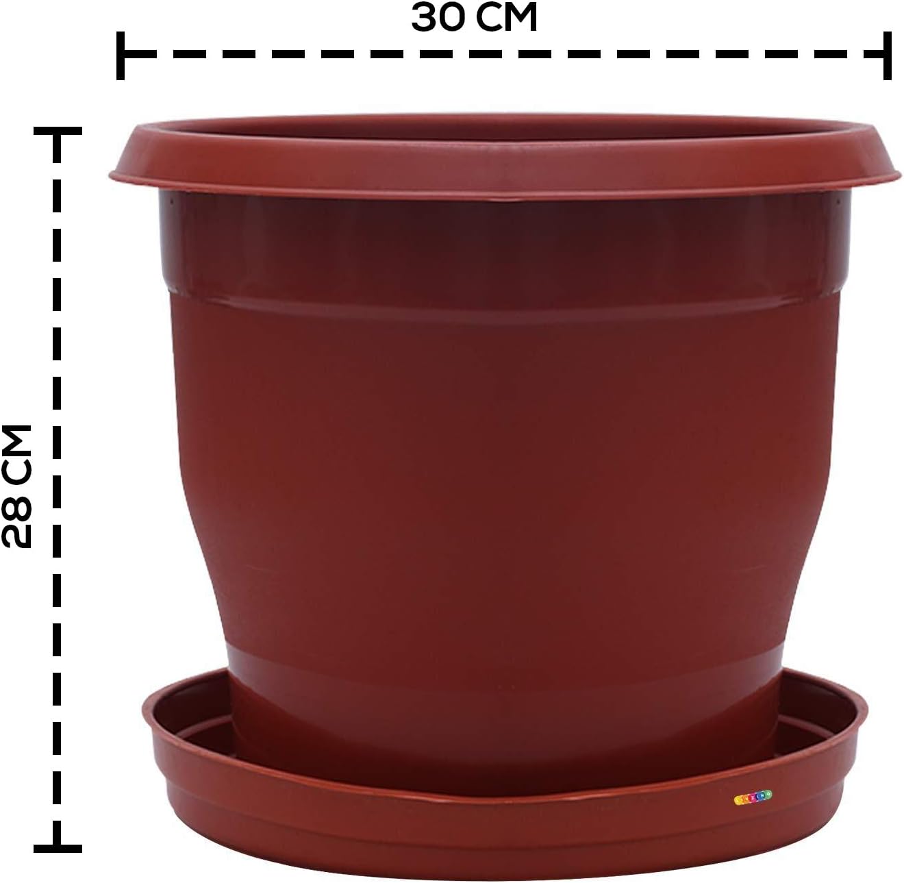 Pack of 10 brown colour Flower Pots with Bottom Tray Set. The Bottom drain holes allows for the removal of excess water, plate tray will remove the excess water in it which avoids mark on wall or any place.