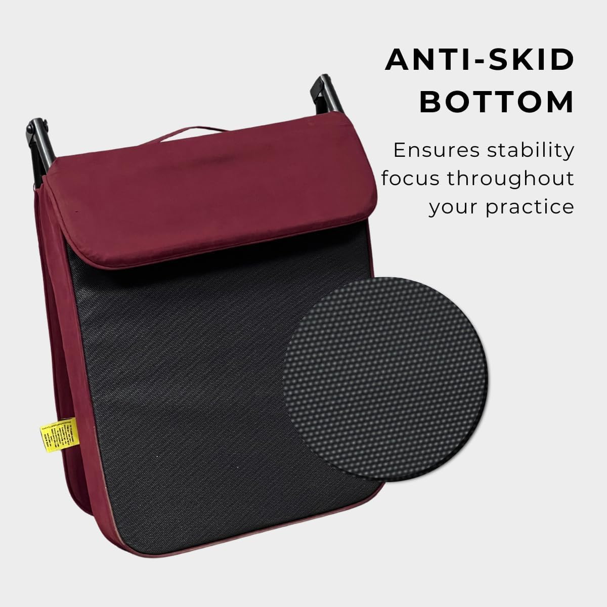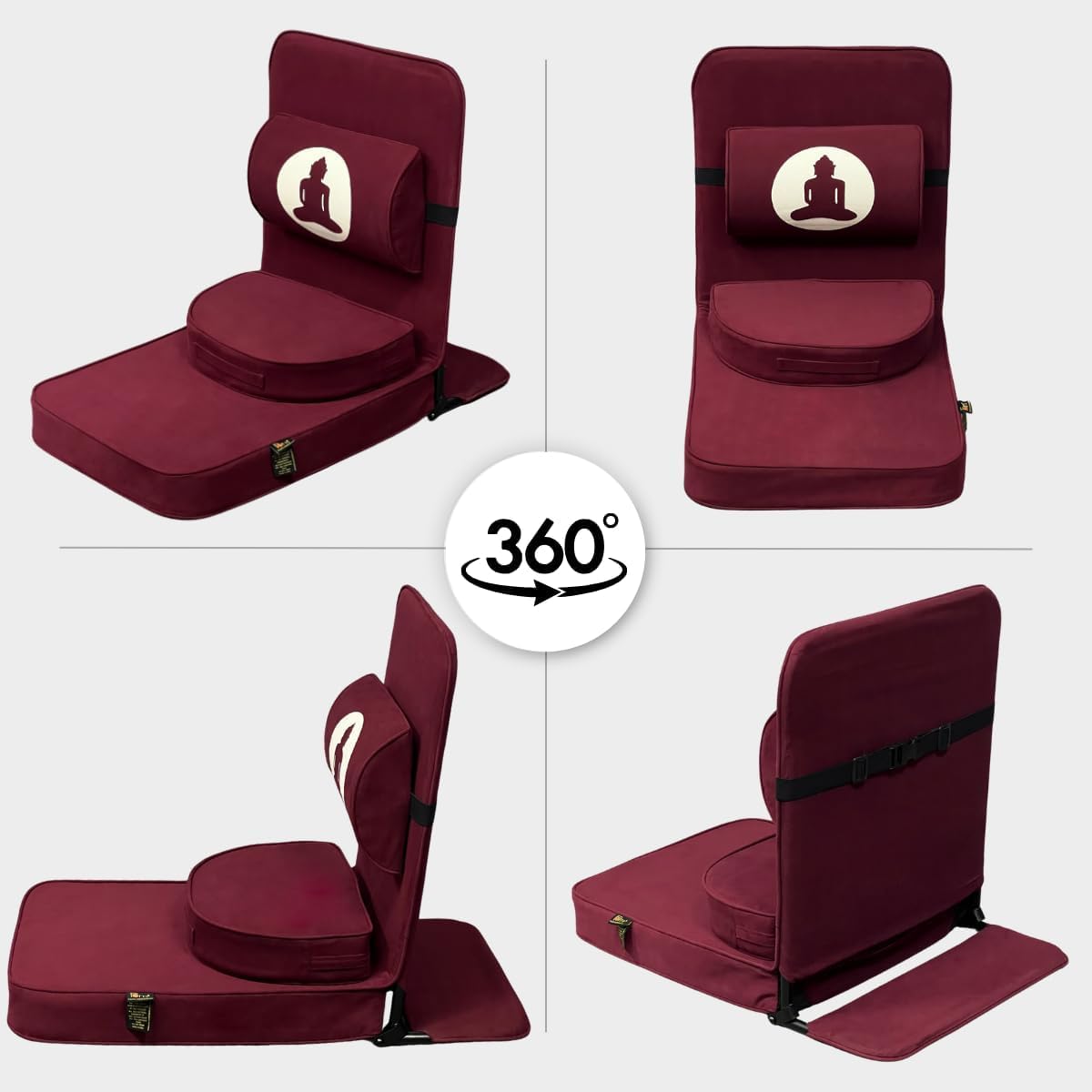 Friends of Meditation Relaxing Buddha Meditation Chair | Detachable Rectangular Back Support & Zafu Cushion | Portable Folding Chair | Floor Chair with Back Support | Yoga Chairs for Adults | Maroon