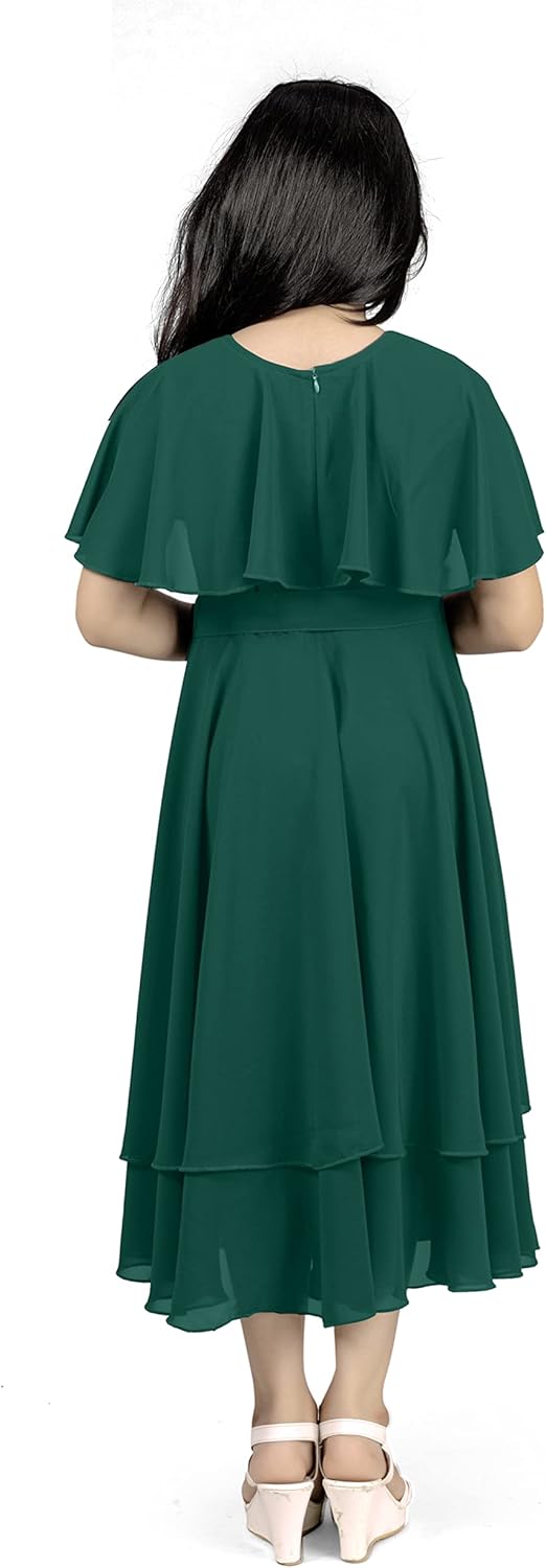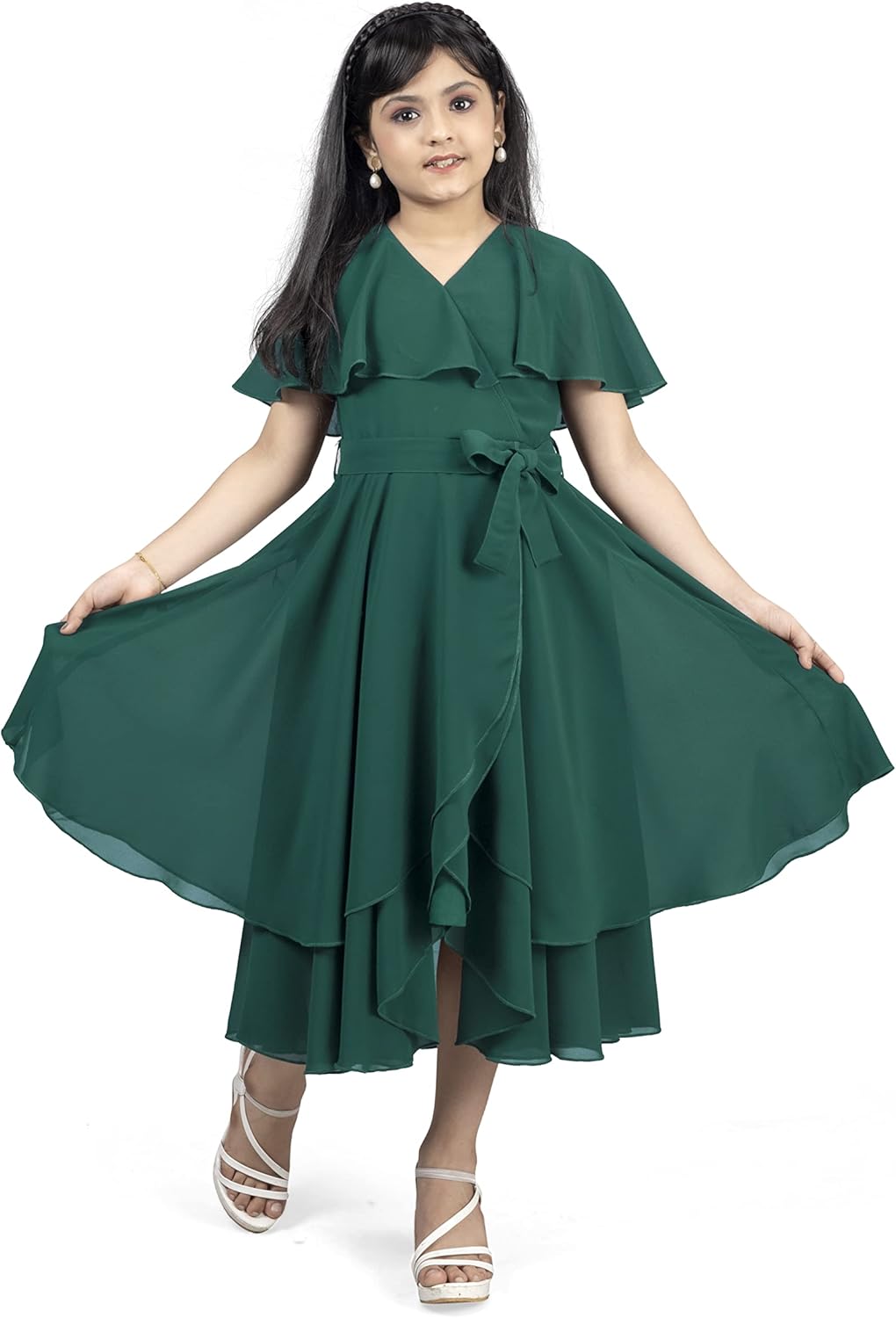 Spruce up your little girls wardrobe with this exclusive dress from Fashion Dream available on amazon. This asymmetric midi dress is perfect for brunch dates with your friends, even fancy daytime soirees or a night of get-togethers with family. Twist your way into the day flaunting this elegant asymmetric dress. This asymmetric midi dress constructed in high-quality georgette fabric, your girl will feel comfortable in it. It featured v neck with ruffles, short flared sleeve, double layers gathers from waist to hem making this midi dress look more gratifying. Including zip at backside and this piece designed with a belted waist is sure to turn some heads. Rendered in a hue, this one offers an effortless way to look proper dress-up.