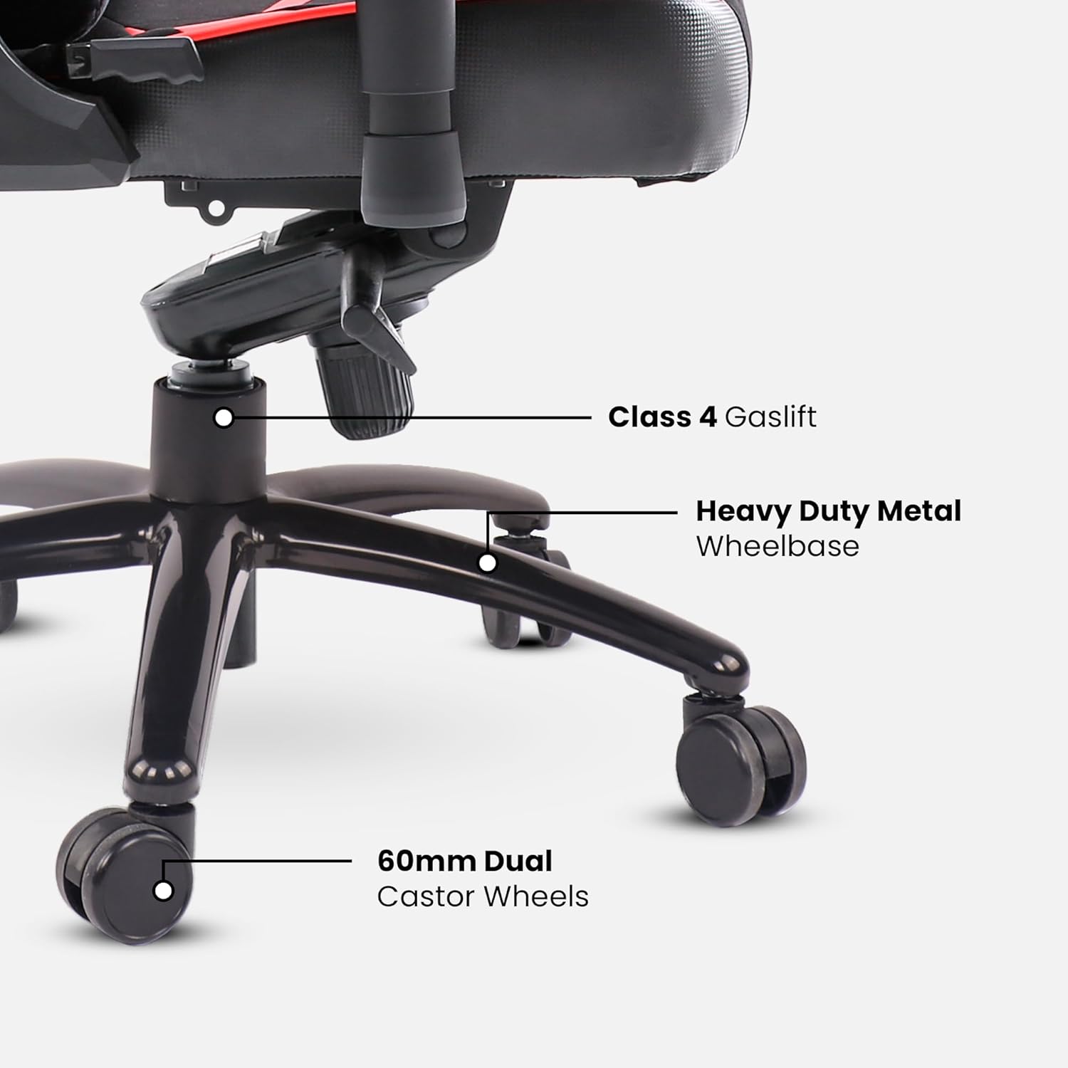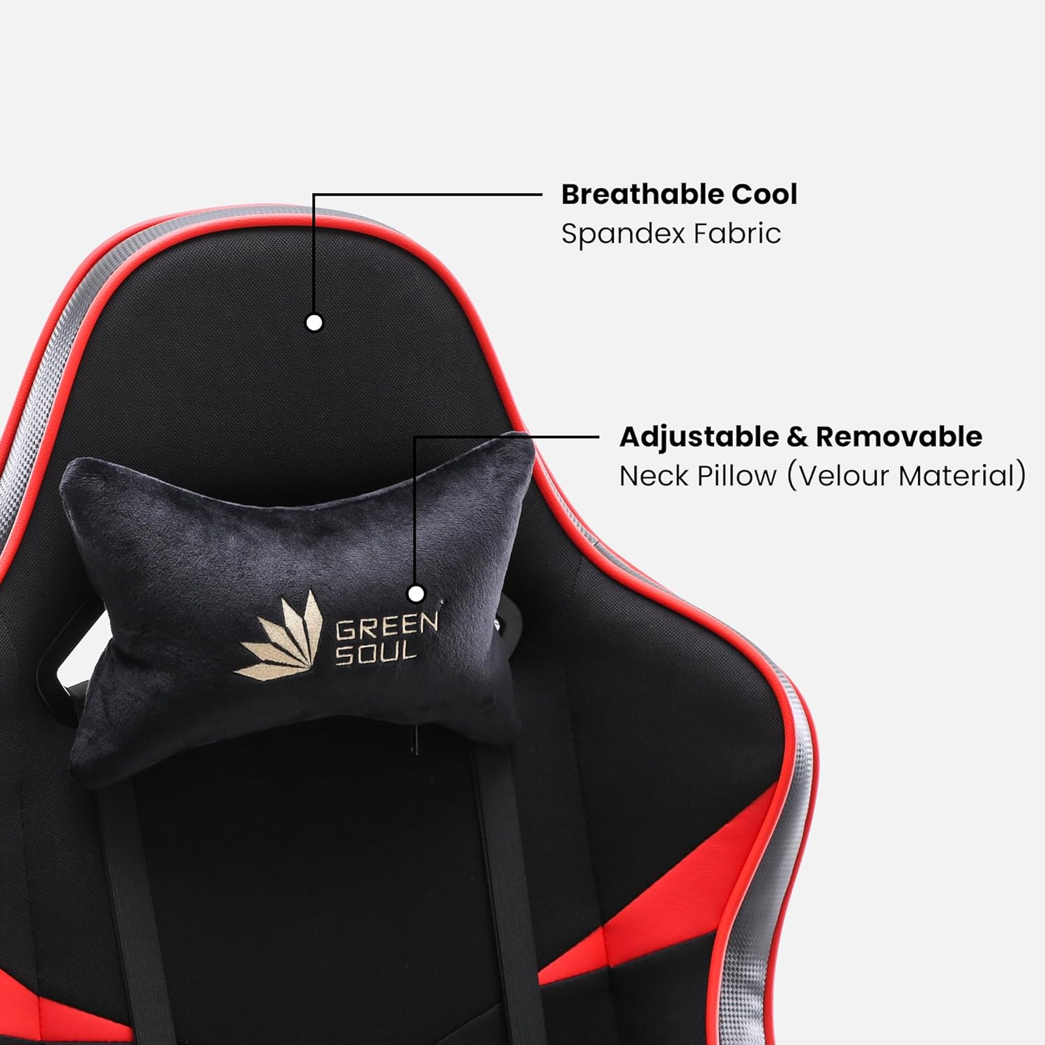 Green Soul® Monster Ultimate Series T Multi-Functional Ergonomic Gaming Chair with Premium Spandex & PU Leather Fabric, Adjustable Neck & Lumbar Pillow and 4D Adjustable Armrests (Black & Red)