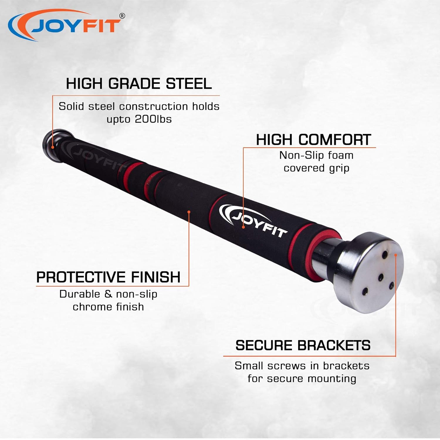 ✅ FEEL THE COMFORT WITH OUR LONG GRIP HANDLE:Joy Fit Home workout bars are made of carbon steel. According to the research and the test, the different grip distances can be used to exercise different parts of muscles. So in the concept of ergonomics, this latest design product, we used the non-slip and extra-long foam grips to ensure the comfort of your exercise and can be applied to more exercises. We also have increased the thickness of foam grips to provide the chin up bar with extra comfort.