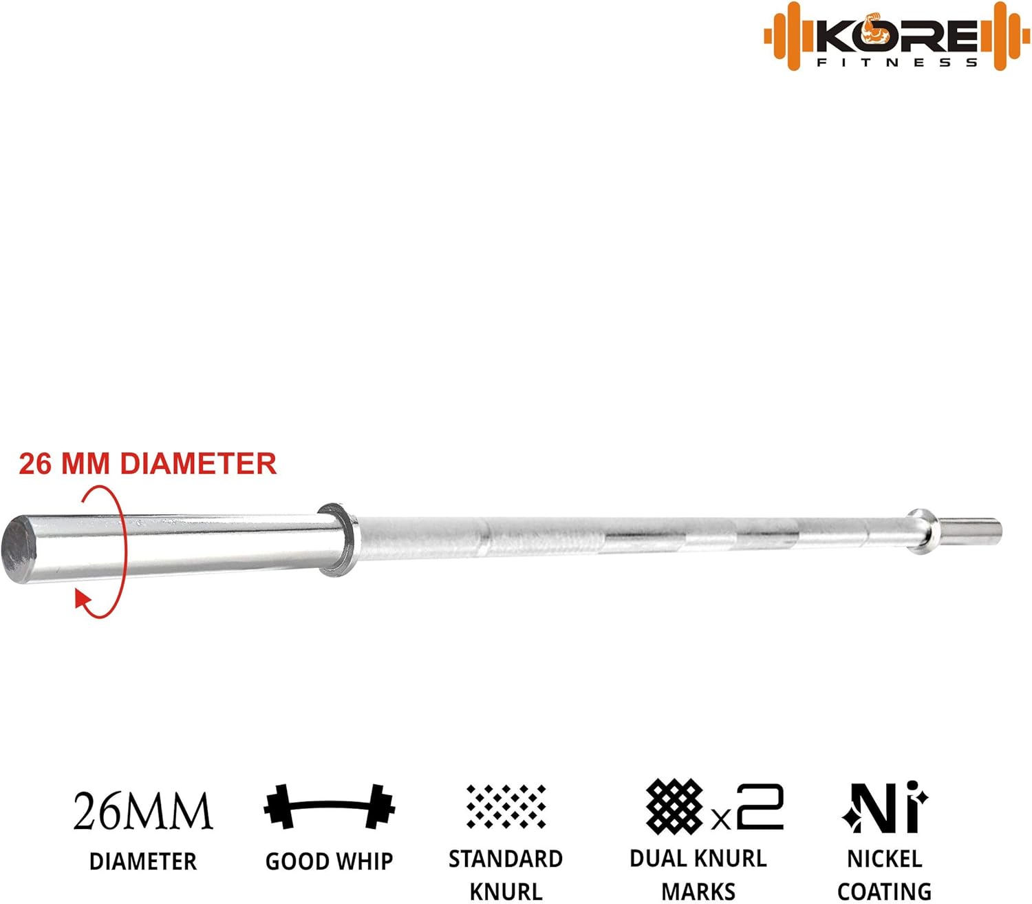 Be the first to review “Kore 26 mm Crome Plated Barbells (3 feet, 4 feet, 5feet, 6 feet, 7 feet) Weight Lifting Bar with 2 Locks” Cancel reply