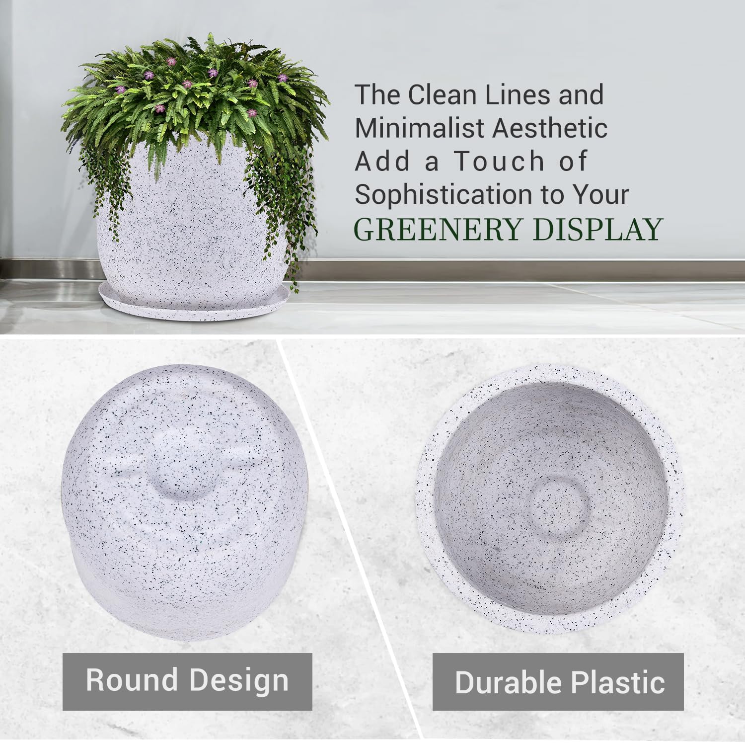💗 MODERN DESIGN AND EASY DRAINAGE SYSTEM : Elevate Your Space with the Flower Pots’ sleek and contemporary Round design. These versatile planters seamlessly blend with any décor, whether it’s a modern kitchen, a cozy sunroom, or a vibrant balcony. The clean lines and minimalist aesthetic add a touch of sophistication to your greenery display. This eliminates the need for separate saucers, simplifying plant care and reducing the risk of messy overflow. Simply water your plants as usual.