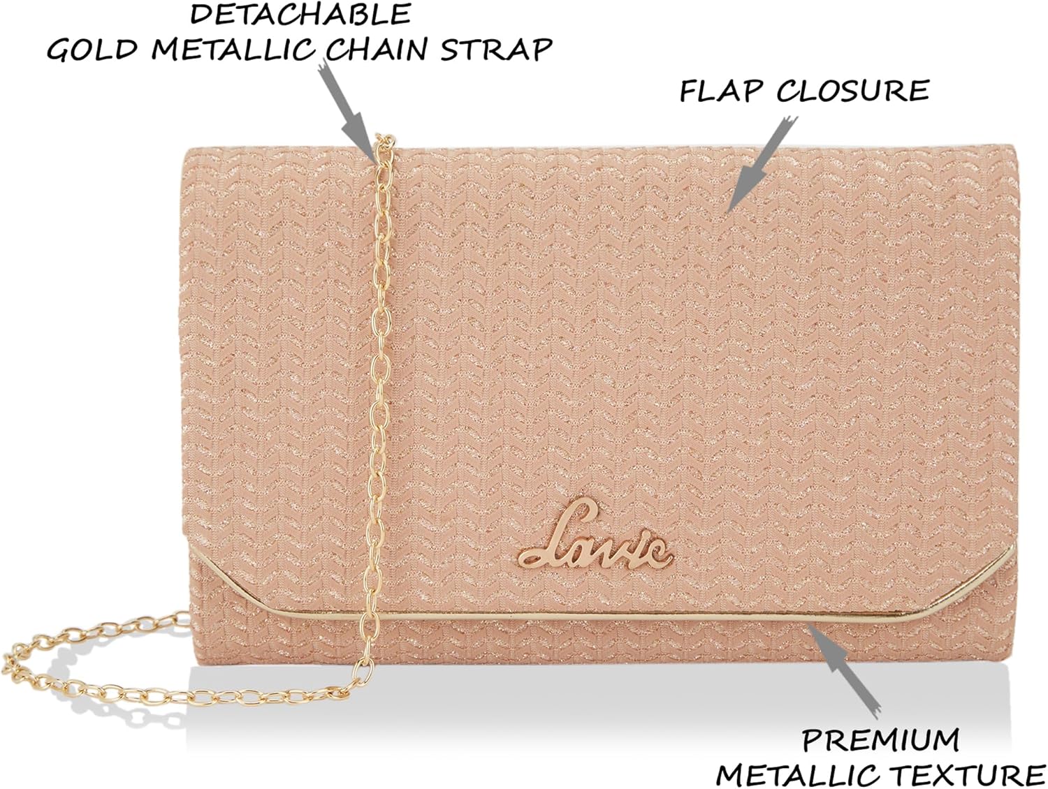 The Lavie Spark Ava stylish fold-over clutch is designed to be both versatile and functional for an evening out. It has two compartments, which can be useful for organizing your belongings, and a card holder slot to keep your cards easily accessible.