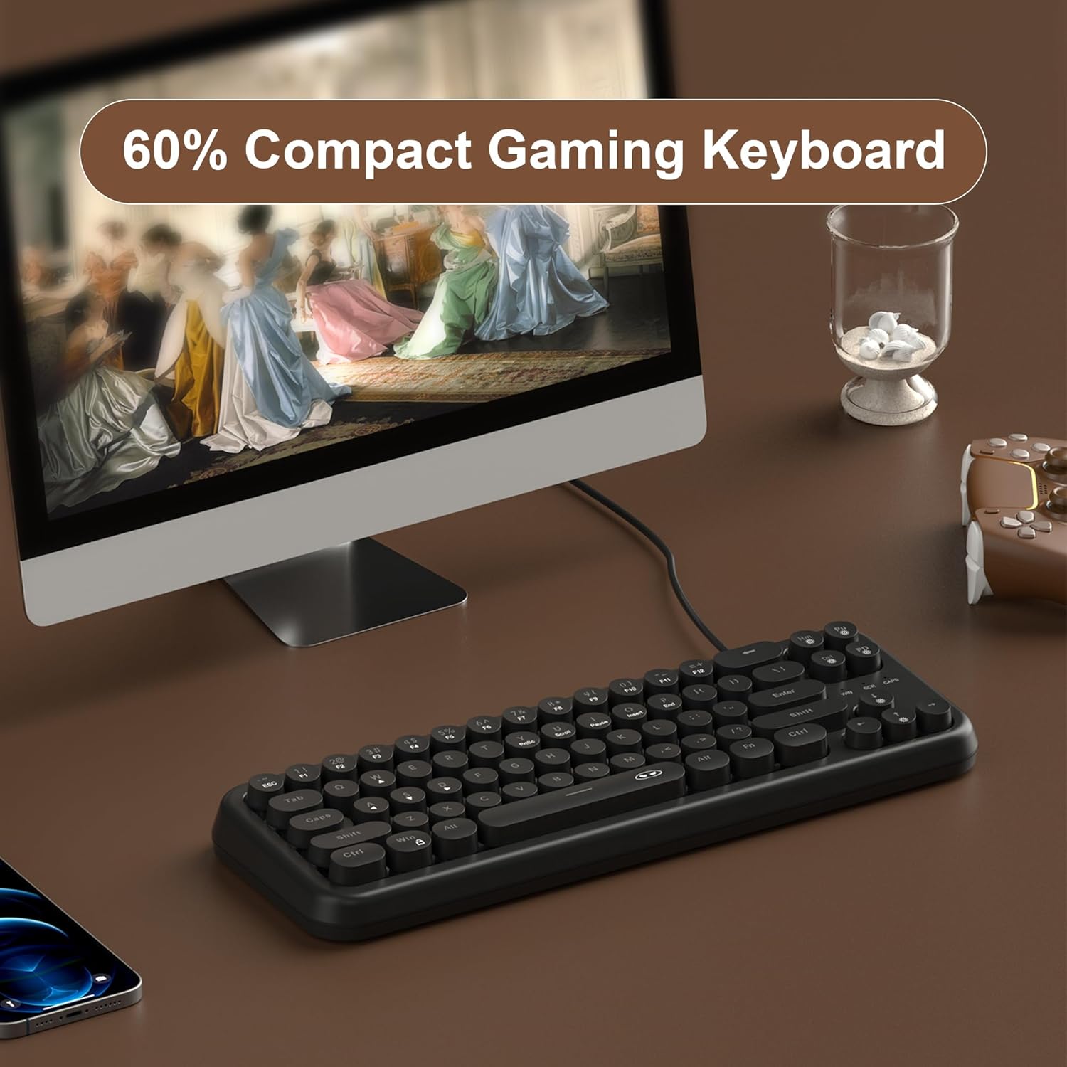 MageGee 60% Typewriter Style Gaming Keyboard, RGB LED Backlit Mini 68 Keys Retro Punk Round Keyboard, USB Wired Computer Silent Keyboard for PC, Laptop, Desktop(Black)