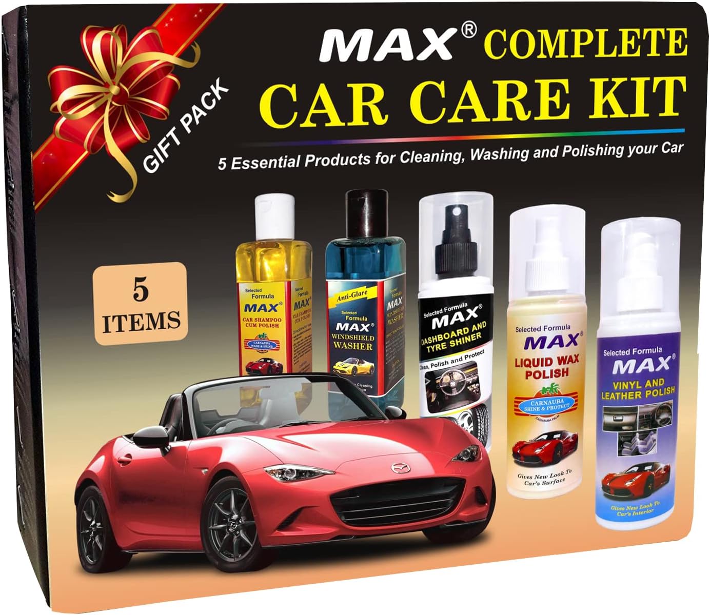 Max Complete Car Care Kit (Pack of 5 Items – 200 ML Each and 3 Foam Pieces)
