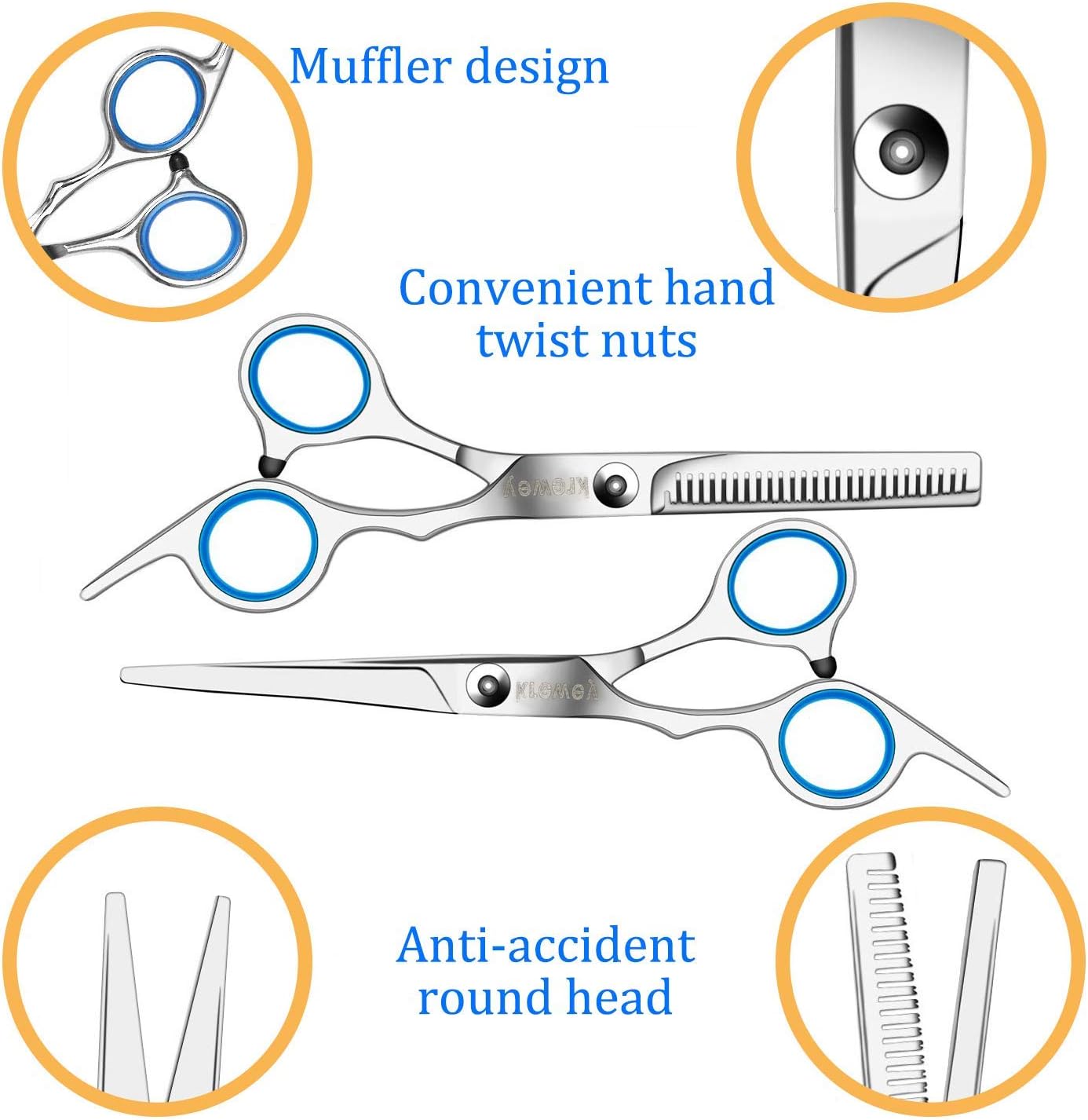 MAYCREATE® Hair Cutting Scissors Professional Home Hair cutting Barber/Salon Thinning Shears Stainless Steel Kit with Comb and Case for Men/Women (Blue)