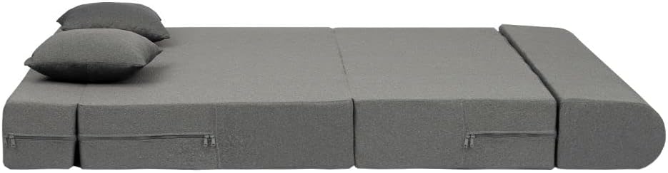 Modern Grey Rectangular Sofa Bed, 72″ L x 60″ W x 36″ H, 2 Seater, Folding, 18kg, 1 Year Warranty