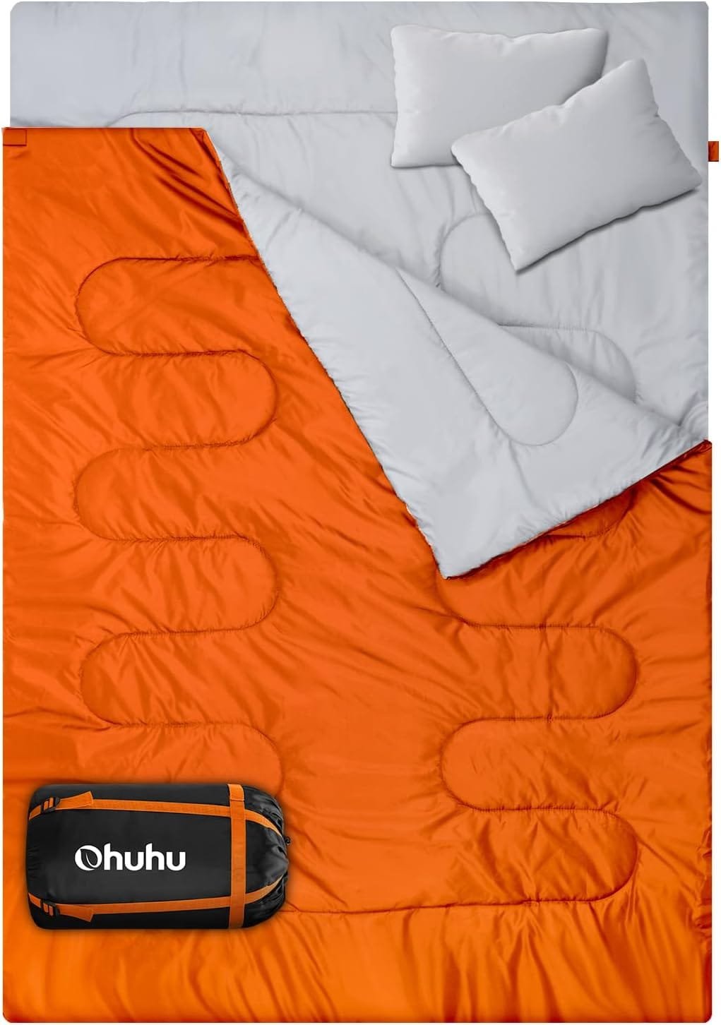 Ohuhu Sleeping Bags for Adults, Double Sleeping Bag with 2 Pillows Queen Size Two Person Sleeping Bag for Camping Hiking Backpacking Waterproof Sleeping Bag for Cold Weather & Warm