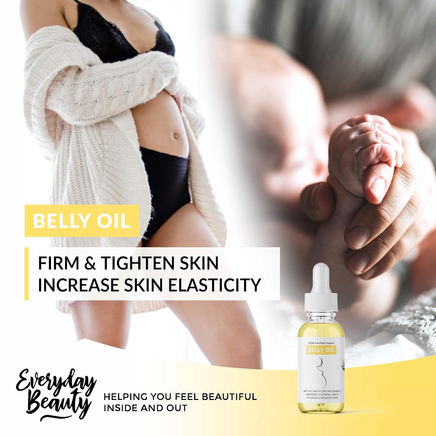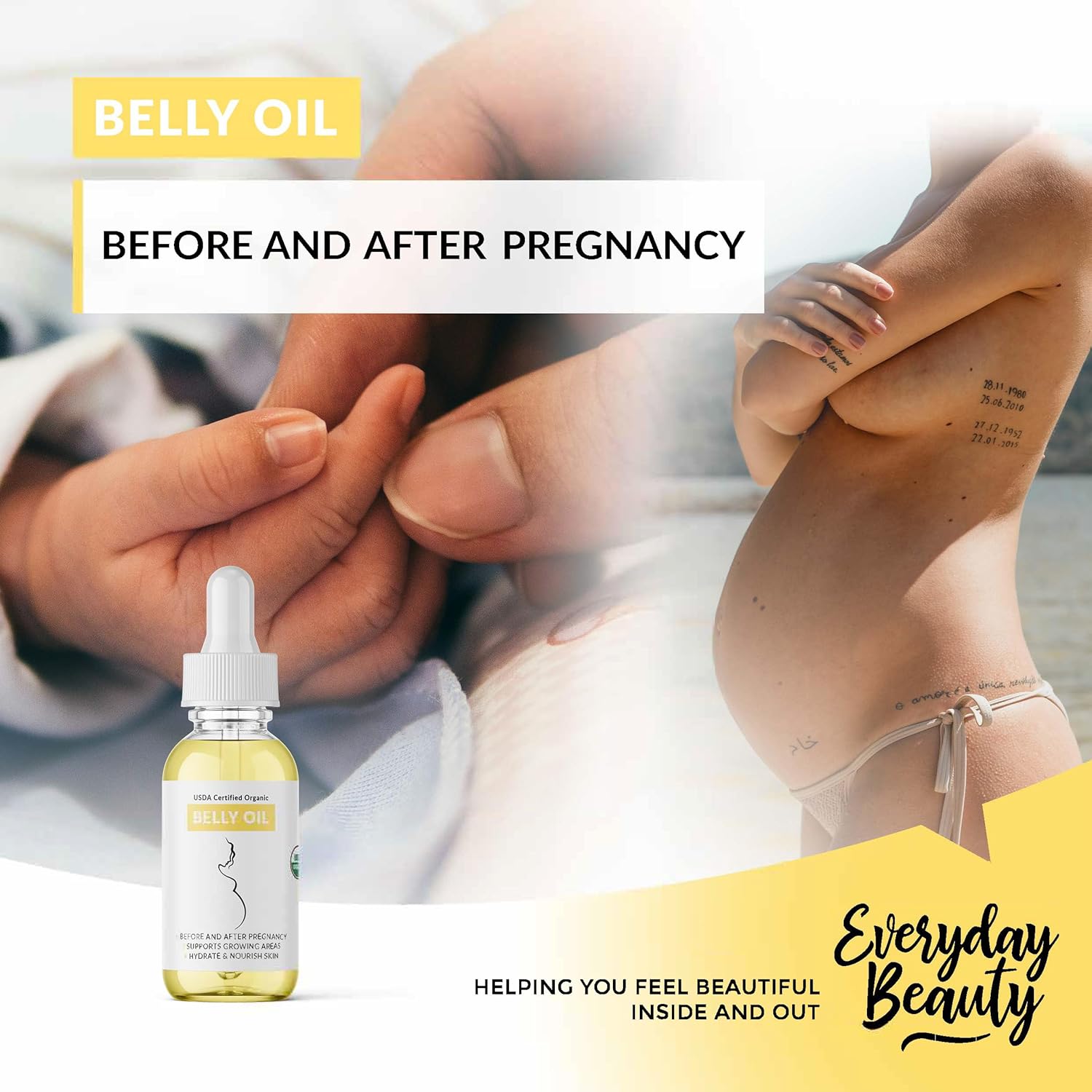 100% All Natural & USDA Certified Organic Belly Oil For Maternity, Pregnancy & Post Partum