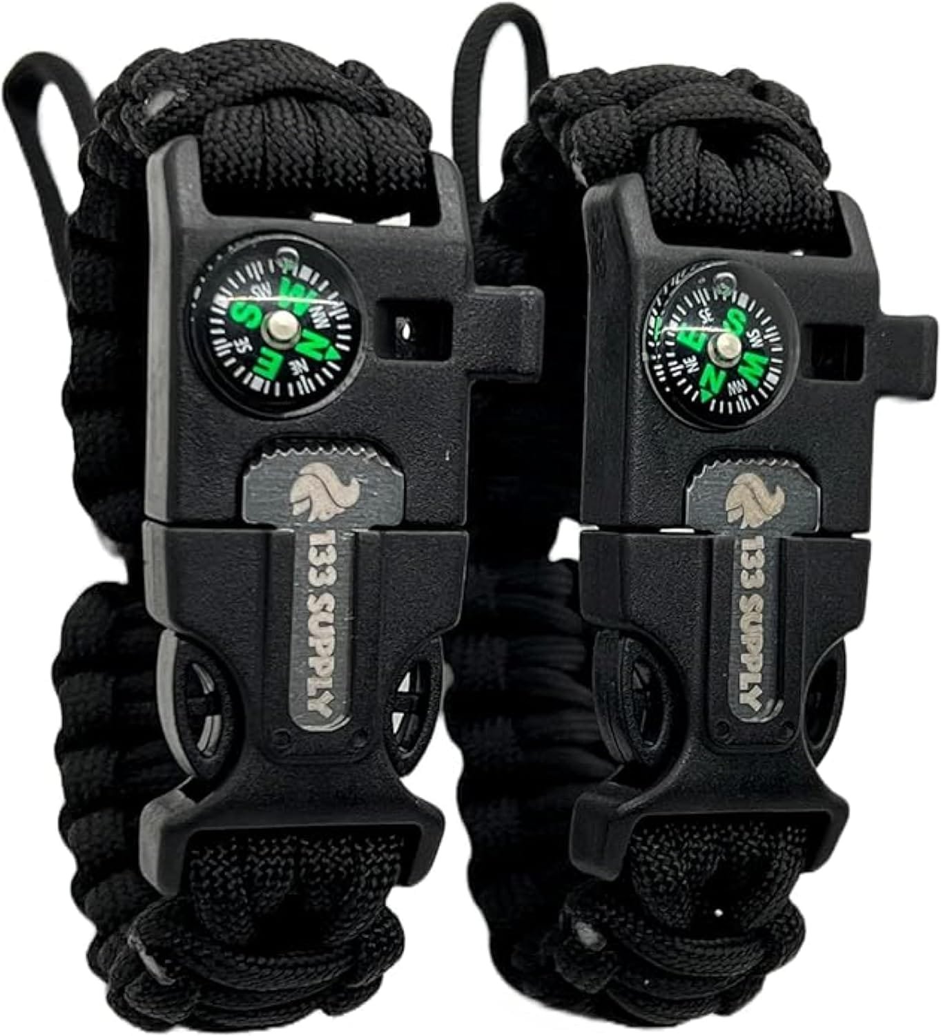 Add to your bug out bag survival kit * Survival gear tools that are essentials for survival! Just one bracelet weighs only a mere 1oz! Imagine the space you can save in your or Go Bag or glove box! 5 tools included on bracelet: small yet reliable compass, very loud emergency whistle, ferro rod and striker/ scraper and 7 strand military-grade550 paracord cord. Watch the 133 Supply videos for instructions on how to make a fire with char cloth and another one on how to use the different parts of the bracelet. Instructions also on the packaging of the Paracord Survival Bracelets Striker