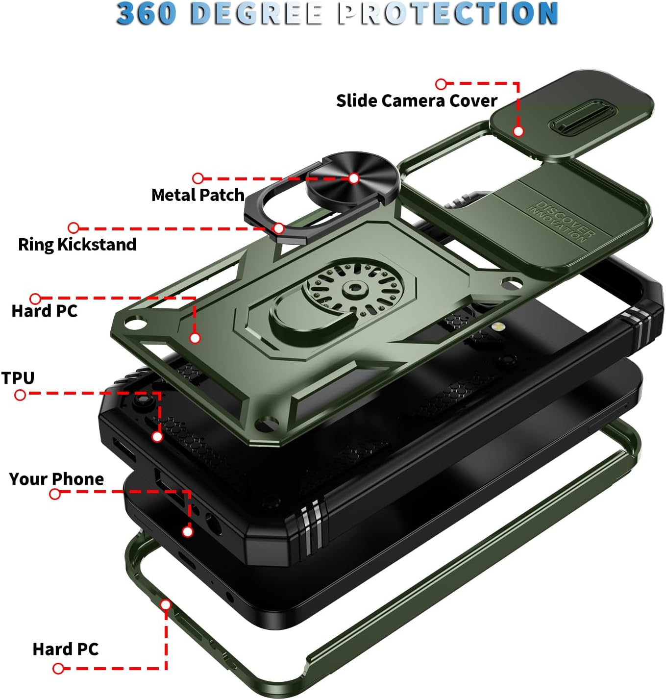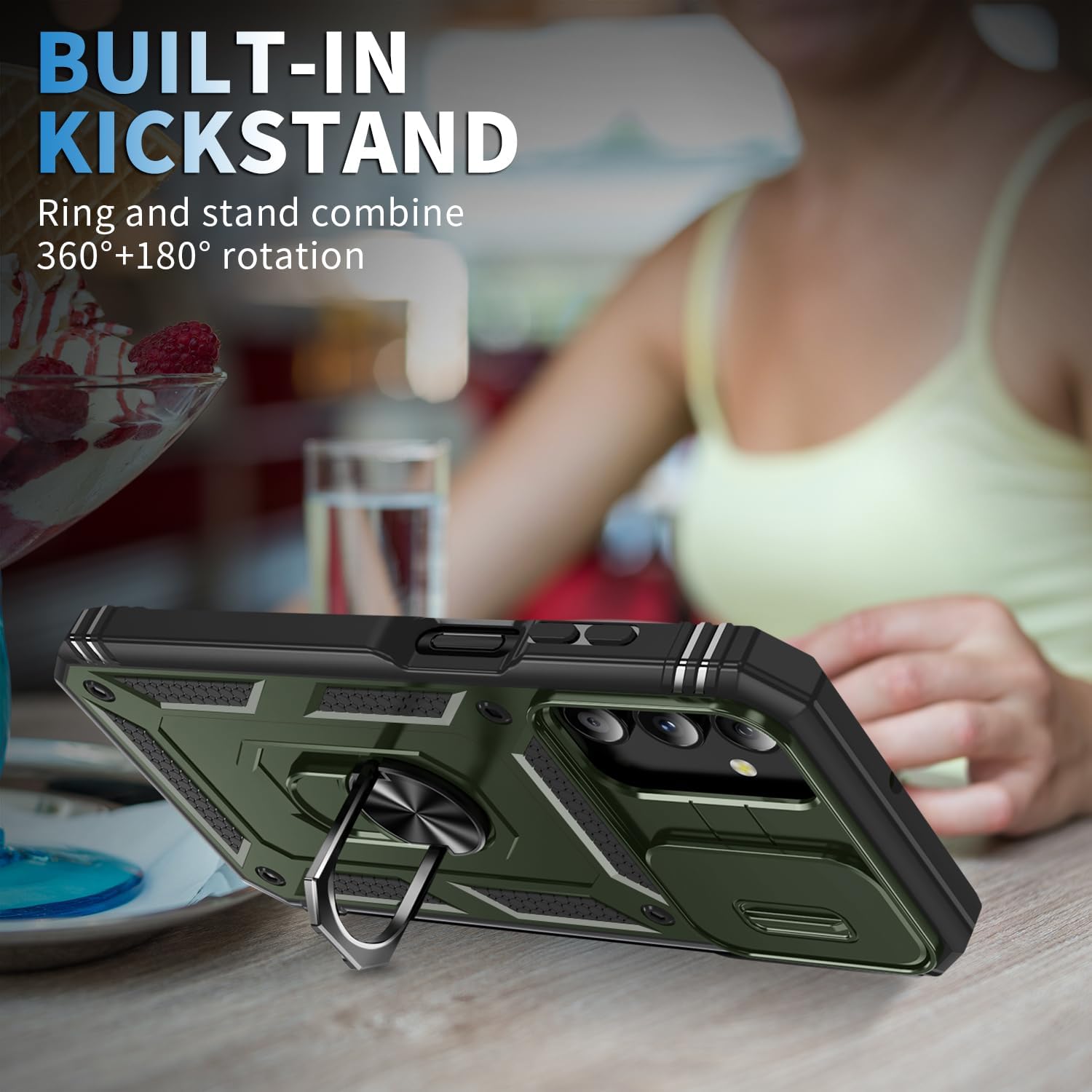 PASNEW for Samsung Galaxy A15 5G Case,360° Metal Kickstand & Slide Camera Cover,Military Heavy Duty Full Body Shockproof Hard Shell for Galaxy A15 4G,6.5 inch,Army Green