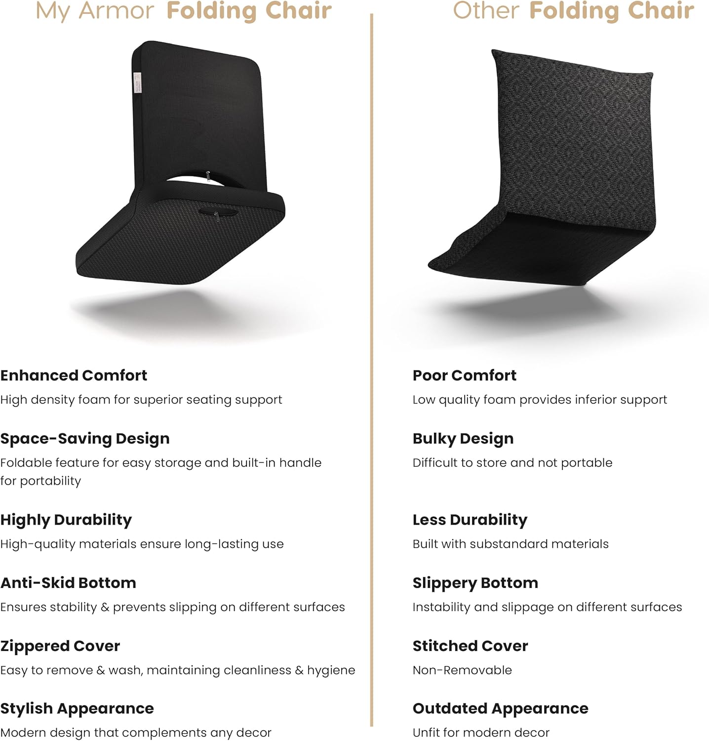 xperience ultimate comfort and versatility with MY ARMOR’s Portable Floor Chair. Designed for relaxation, yoga, and meditation, this chair offers fixed angle back support to ensure optimal comfort during extended sitting sessions Crafted with a lightweight and portable design, it’s perfect for on-the-go use, allowing you to take your relaxation spot wherever you go. The premium removable air mesh cover with a zip ensures easy cleaning and maintenance, keeping your chair fresh and hygienic Whether you’re unwinding at home, practicing yoga, or meditating outdoors, MY ARMOR’s Portable Floor Chair provides the perfect seating solution. Embrace comfort and convenience with this stylish and functional floor chair