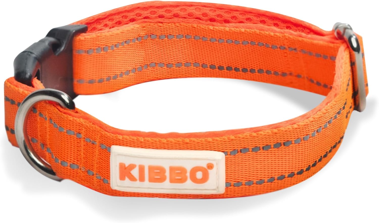 Superior Quality Soft Mesh & Nylon Material Your pet’s comfort is our top priority. Our collars are crafted using a premium blend of soft mesh and durable nylon, ensuring a cozy fit that won’t irritate their skin. Highly Reflective Thread Design Safety is paramount, especially during low-light conditions. Our collars feature highly reflective threads running around the collar that shine, ensuring your pet remains visible and secure during evening & night-time walks. Fully Adjustable Every pet is unique, and our collars reflect that. With a fully adjustable design, you can customize the fit using the Tri-Glide to match your pet’s size and shape, guaranteeing a snug and secure hold. D-Ring for Leash & ID Card Kibbo Padded Collars are equipped with a sturdy leash & ID Card attachment D-ring point, made with durable nickel. Weather-Resistant Our Padded Collar are designed to be weather-resistant, allowing you to use them in various outdoor conditions. It is typically resistant to water, moisture, and fading, ensuring their functionality and appearance over time.”