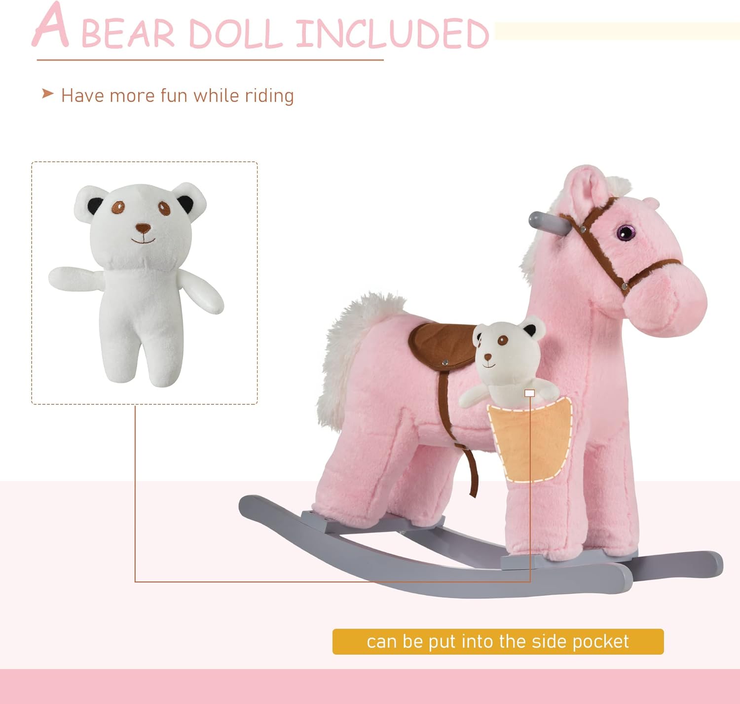 Be the first to review “Qaba Kids Plush Ride-On Rocking Horse with Bear Toy, Children Chair with Soft Plush Toy & Fun Realistic Sounds, Pink”