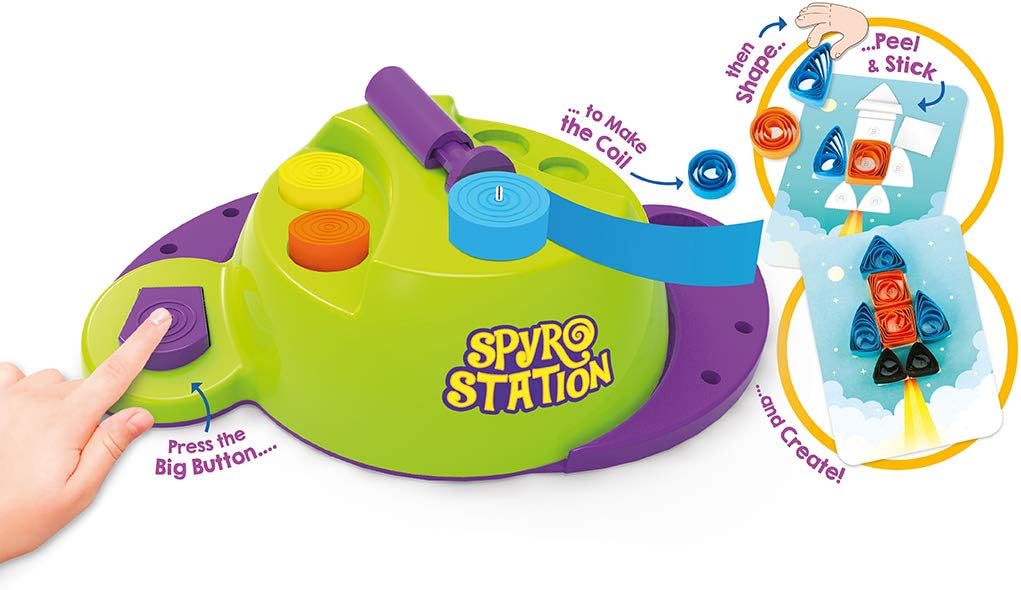 Children love to create! Clay, paint, crayons, blocks, these are just a few ways to create that most Children would have tried their hands on. In today’s super sonic age, having something different, something new is a must to keep the child creatively engaged. The Spyro Station is the perfect answer. It’s automatic action is totally on-trend and the act of transforming paper into a coil, coils into shapes and shapes to fantastic objects is certainly the most fascinating way to create!