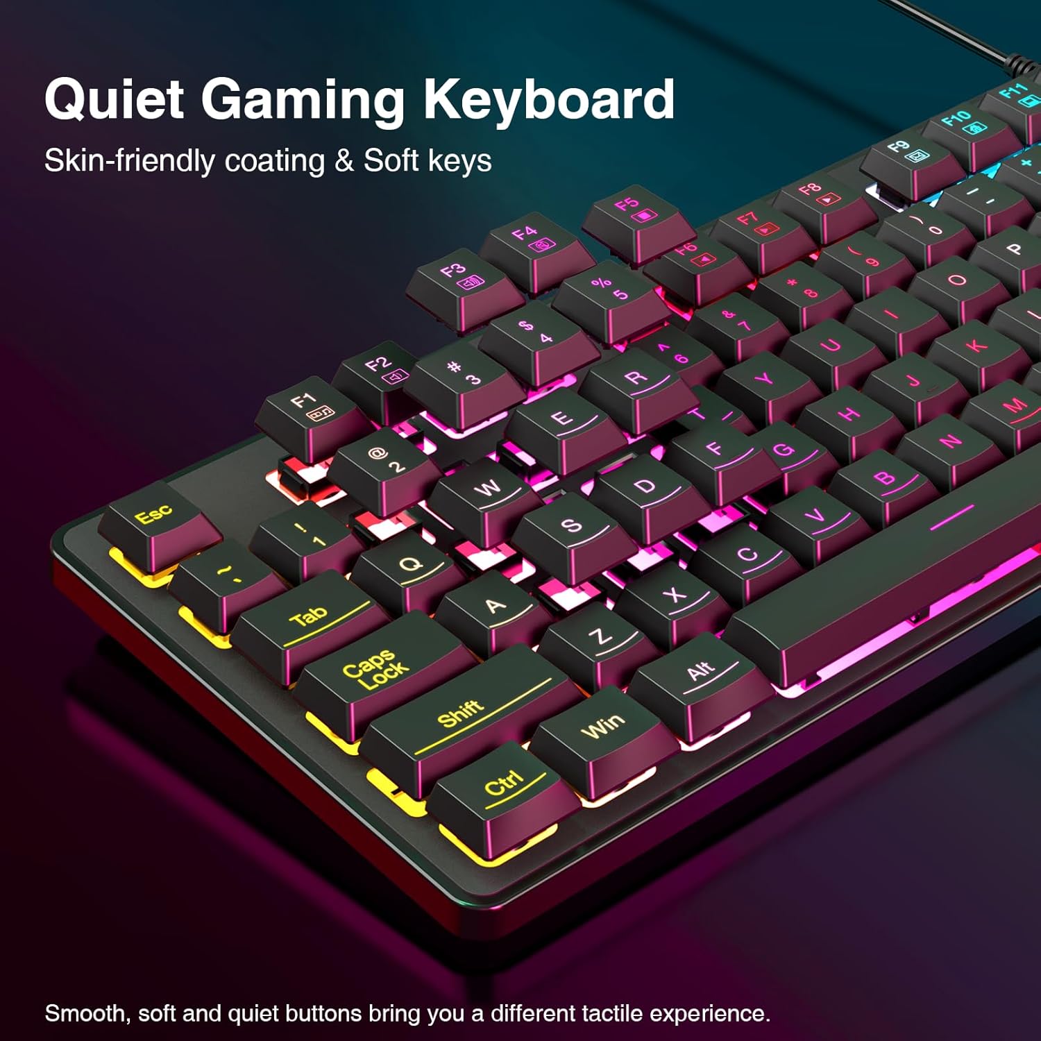 【Comfortable Gaming】The keyboard’s foldable stand, skin-friendly coating, and floating Keycaps increase typing comfort. This keyboard and mouse are dedicated to providing an efficient gaming experience while ensuring maximum comfort