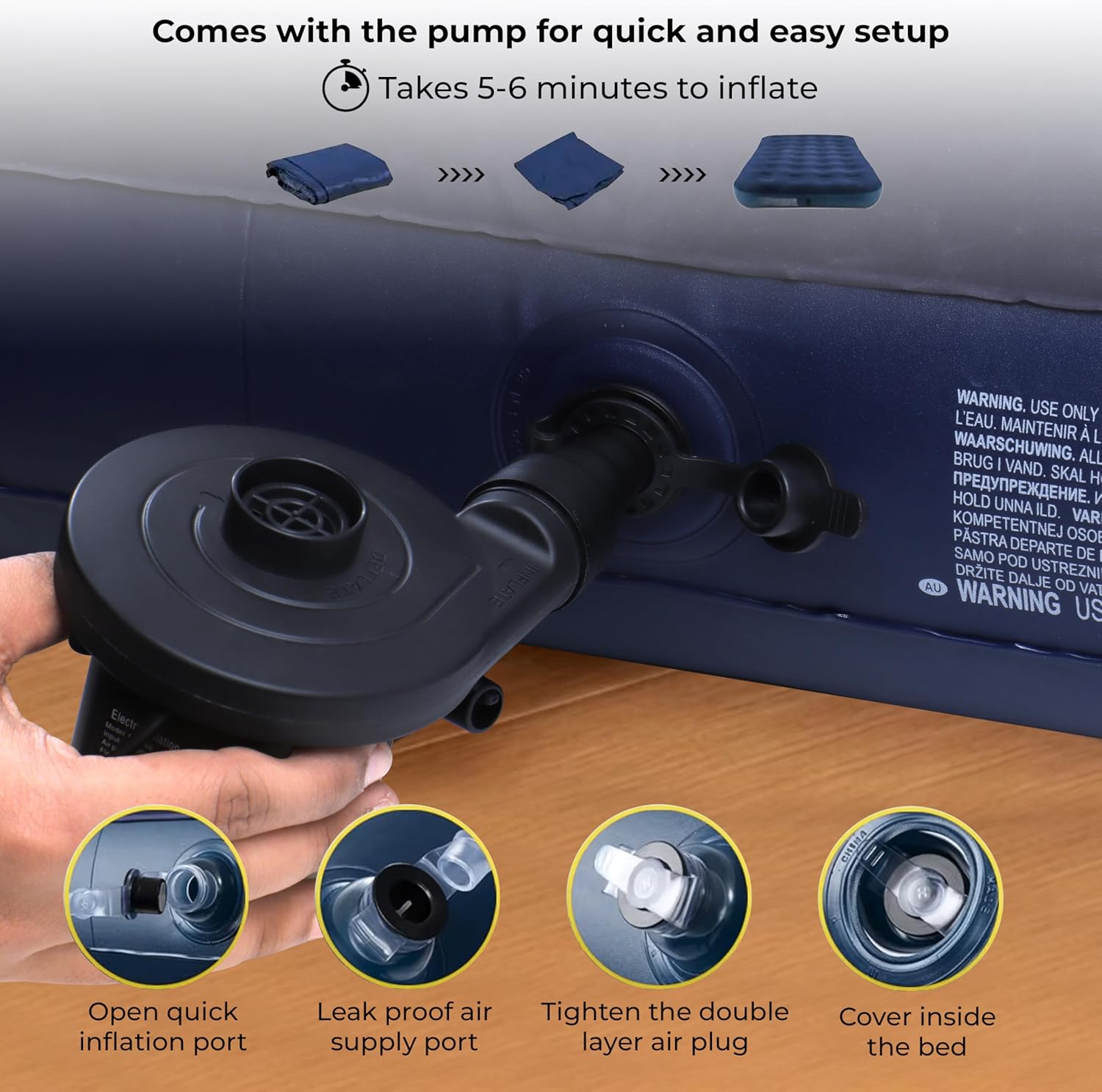 Robustt 32 Holes Twin Size Air Bed With Air Pump | Quick Inflatable – Blow Up Mattress Air Bed Portable Waterproof Air Mattress for Hiking, Travel, Outdoor and Home