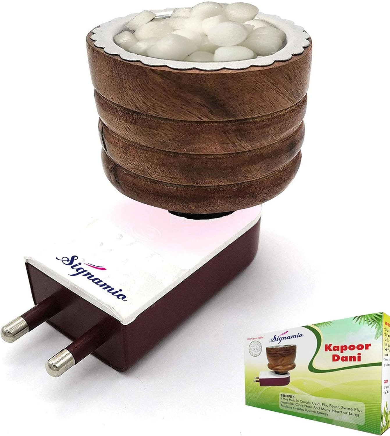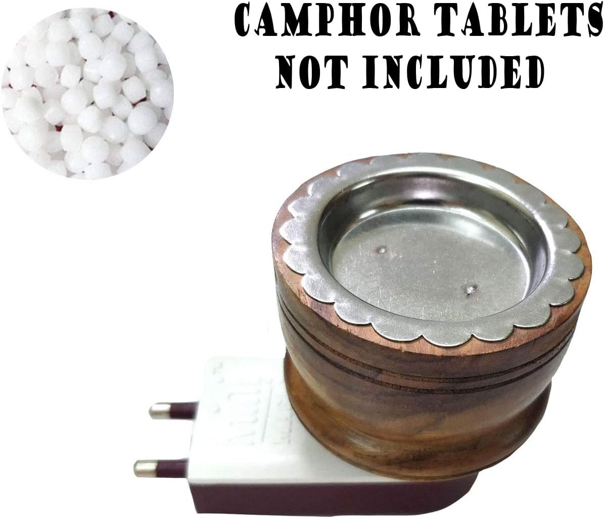 SIGNAMIO® Wooden Kapoor Dani,Electrical Diffuser,Electric Incense Burner,Kapoor Diffuser for Home,Kapoor dani,Karpuram Stand Burner for Home,Office (Camphor NOT Included) DN-1