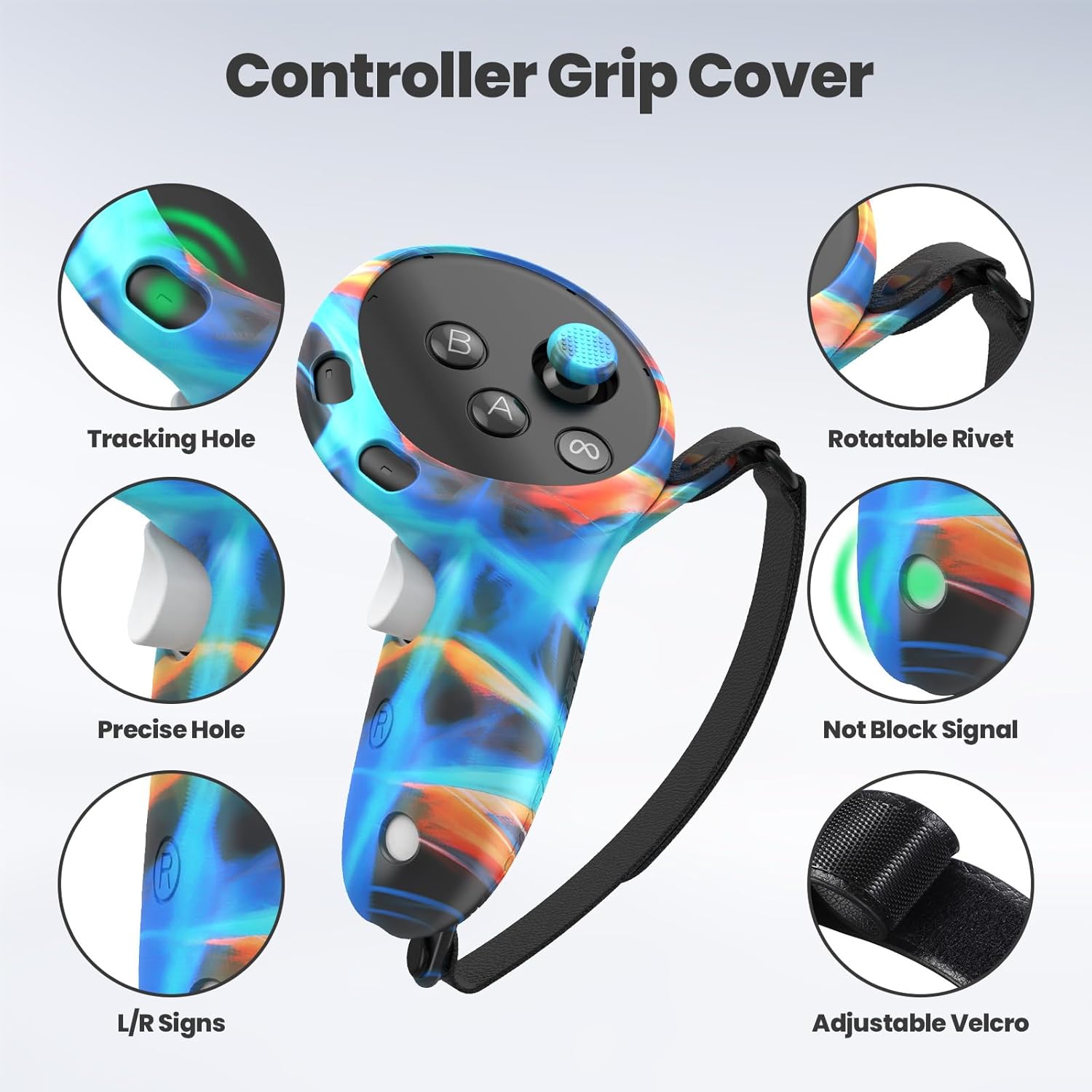 Controller Grip Cover with Non-Slip Joysticks Cover: Accurate cutouts and holes design ensure that the signal can enter the controller normally. Flexible and adjustable hand straps fit various hand sizes, making your VR gaming experience even more enjoyable.