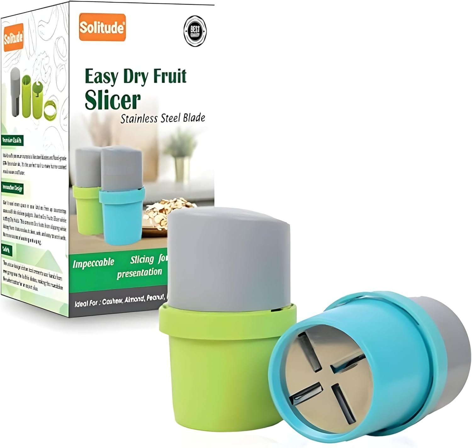 Be the first to review “Solitude Dry Fruit Cutter, Slicer, Grinder, Chocolate Cutter And Butter Slicer With 3 In 1 Blade For Almonds, Cashews Etc. (Stainless Steel, Abs Plastic) Standard Green”
