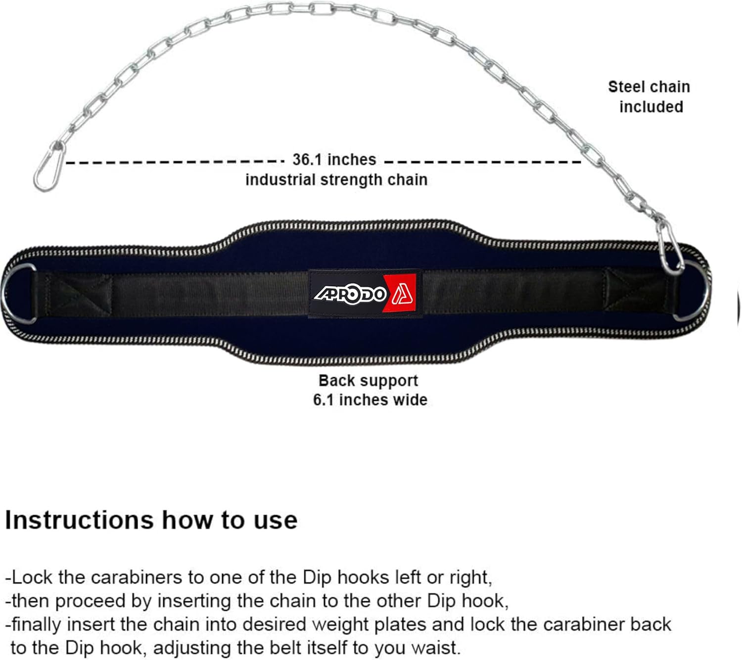 We have come up with the unique design for this unisex aprodo Dipping Belt, we wanted a solid and long lasting Dip belt hence we made the Dipping belt from extra thick heavy duty neoprene making sure it can withstand heavy weights and high impacts without falling apart like other dip belts HEAVY DUTY STEEL CHAIN – Strong, thick chain constructed from a 36 inch steel chain made to provide a secure fit with your desired weight. Steel chain and carabiner mechanism to easily add weight for chin-ups and dips, Weighted dip belt helps build power and strength in triceps and chest QUALITY AND DURABILITY – We design strong products to keep you strong. You will notice the quality of the stitching and the strength of the chain and the sturdy carabiner.This dip workout belt was is a wider, more resilient design with double stitching, heavy duty neoprene that breathes, and enhanced construction that offers long lasting durability against wear and tear. TRAIN FOR MUSCLE UPS – Add weight to strengthen your pull ups and dips to train for the progression to seamless muscle ups, Reach new max sets of pull ups and dips while creating additional upper body muscle strength by adding additional resistance to body weight exercises STRONG AND COMPACT – Extremely lightweight and easily folds into a gym bag. Contoured belt design provides back support and fits comfortably during serious training, Adjustable, one size fits all