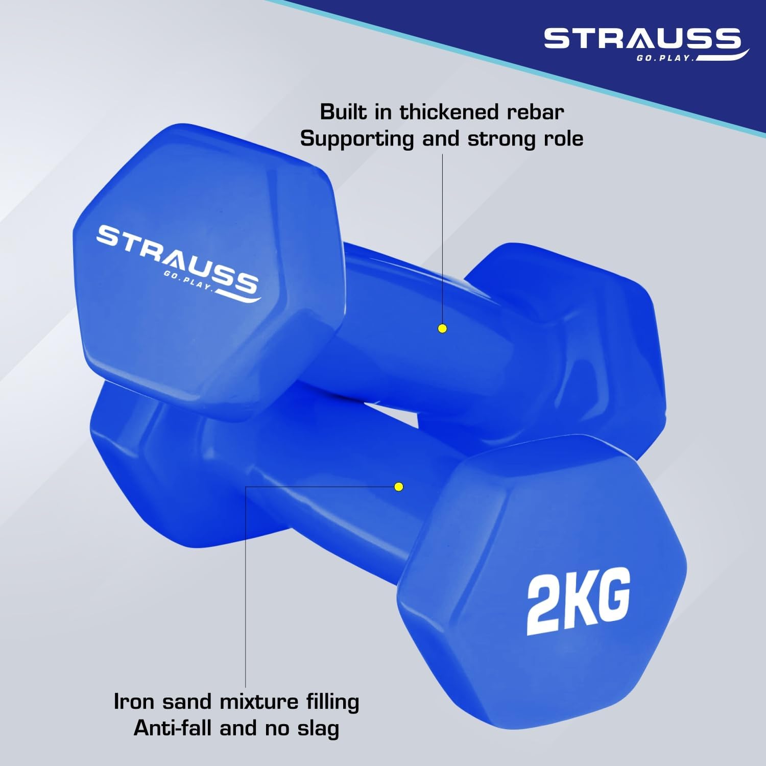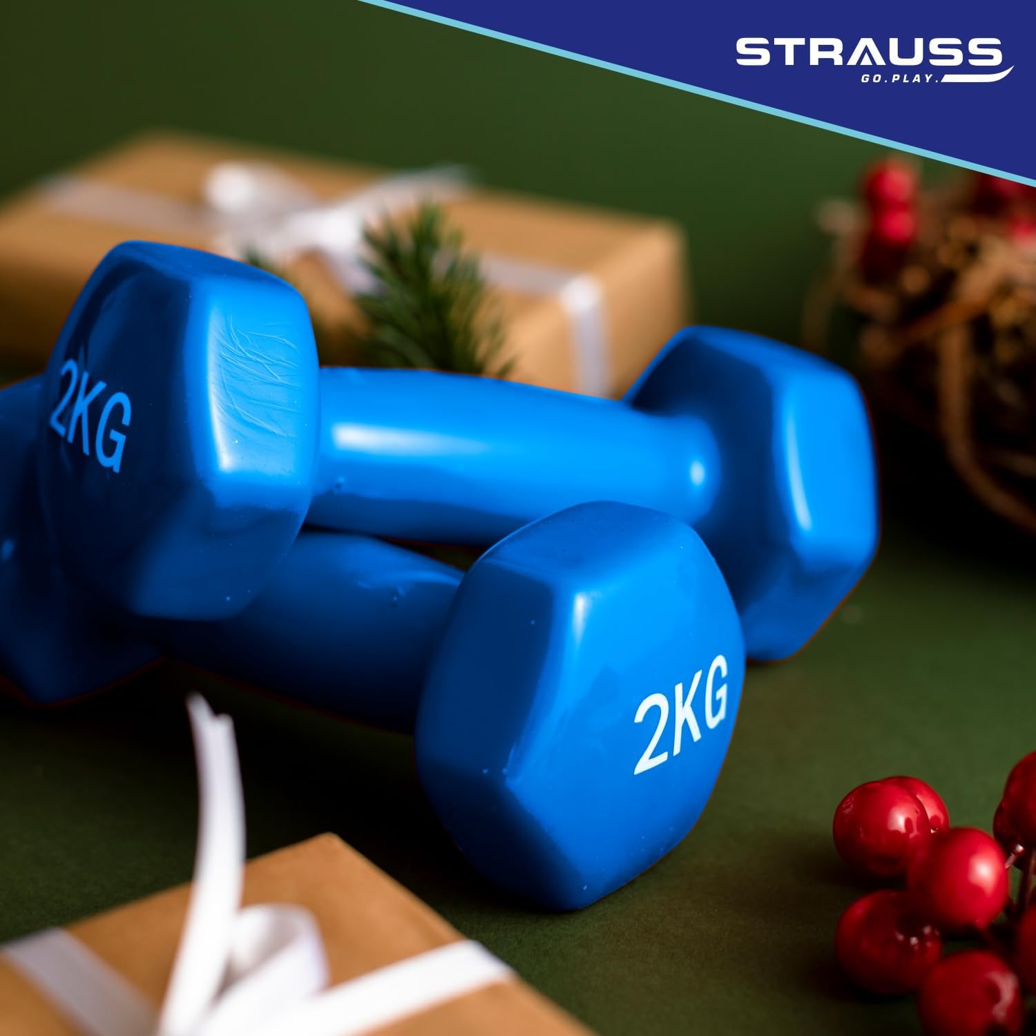 Strauss Unisex Vinyl Dumbbell, 4 Kg (2 Kg X 2) Vinyl, (Blue)