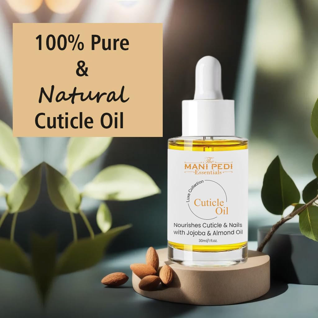 THE MANI PEDI ESSENTIALS Cuticle Oil Nail Serum with Jojoba, Rosehip & Almond oils Nail Strong Oil for Cuticle Care, Nail Growth & Strength – 30ml