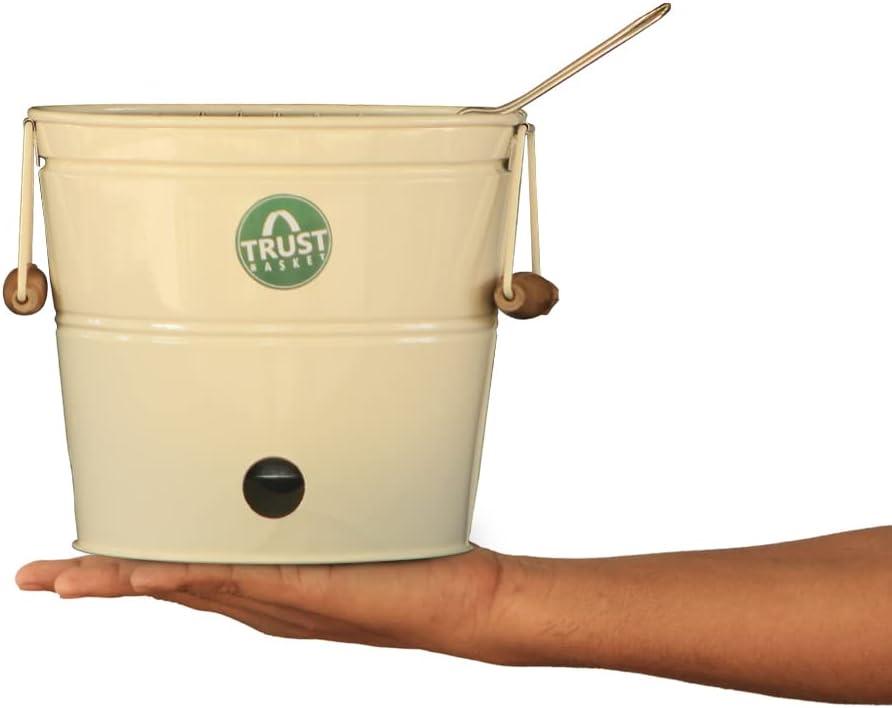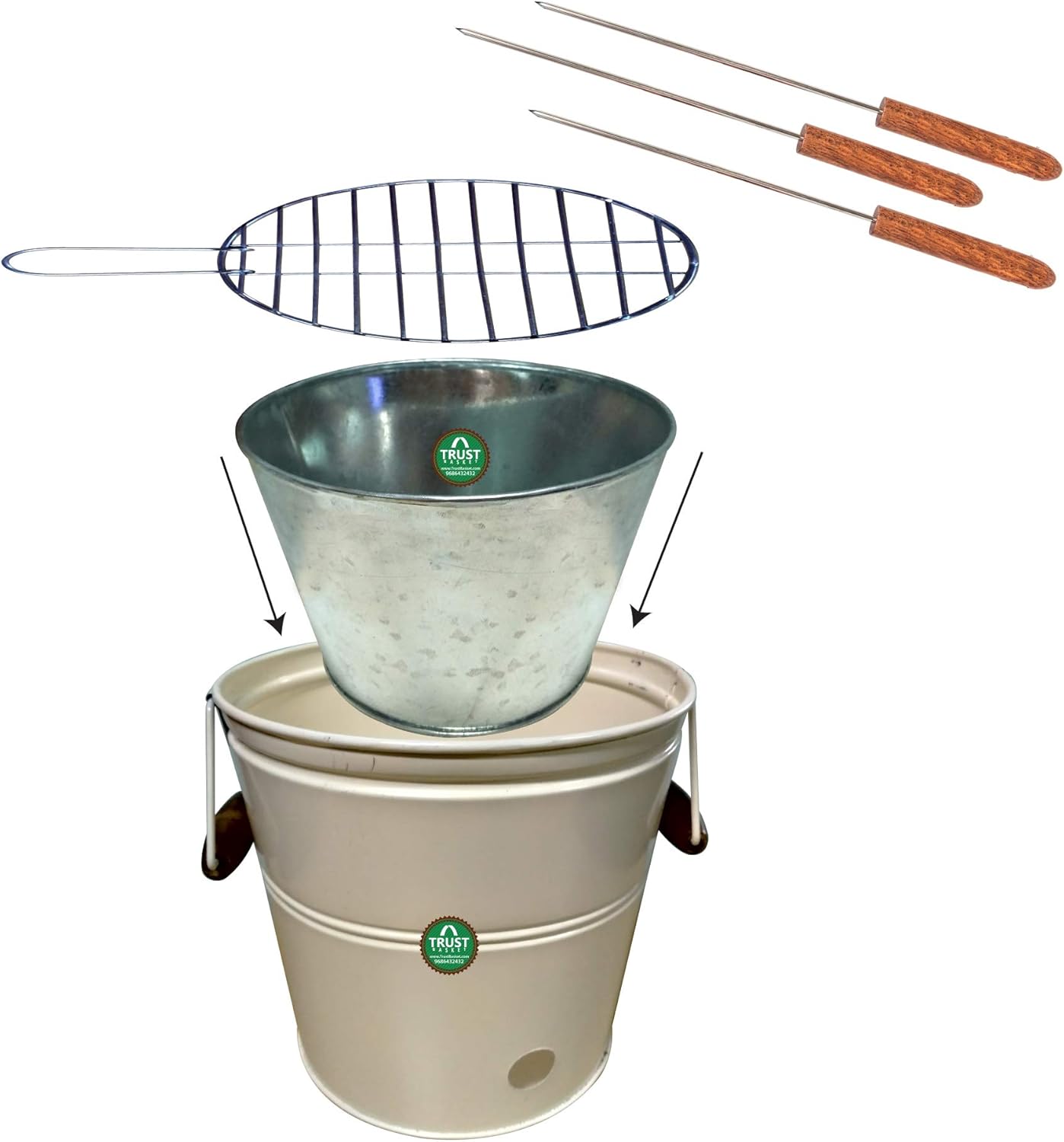 TrustBasket Round Portable Charcoal BBQ Barbeque Bucket Set for Indoor/Outdoor and Multiuse (Ivory)